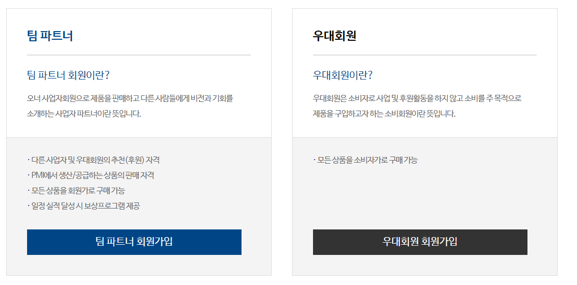 우대회원은 소비자로 사업 및 후원활동을 하지 않고 소비를 주목적으로 제품을 구입하고자 하는 소비회원이란 뜻입니다.