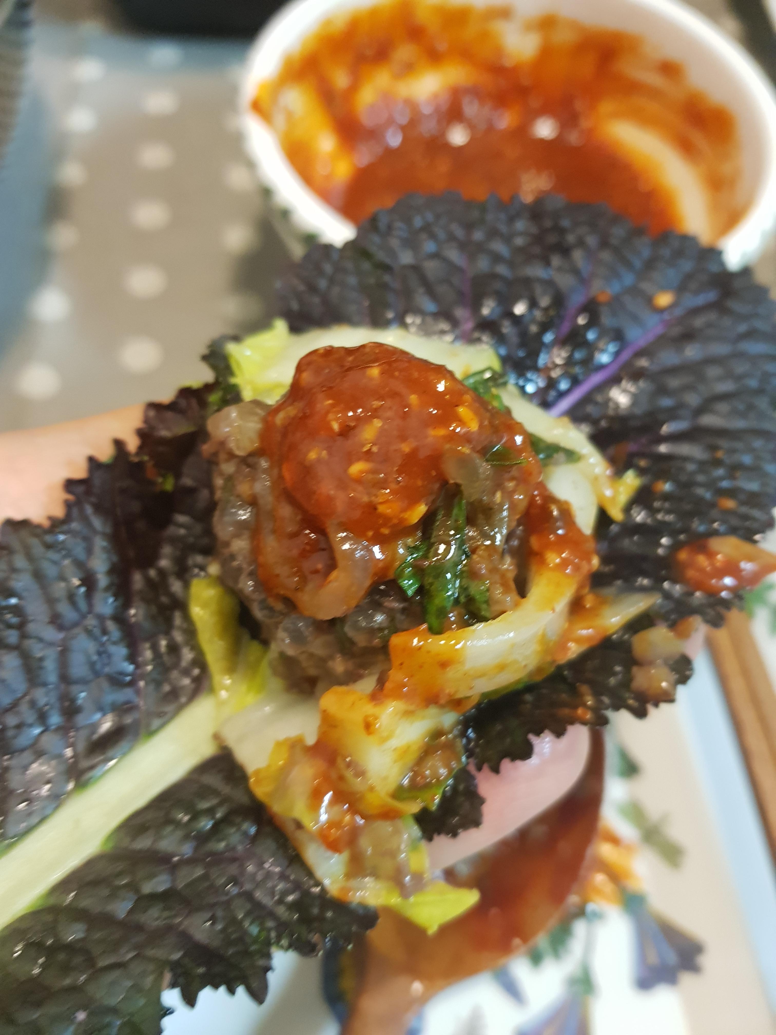 한입 쌈 싸 먹고 두 번째 쌈 준비!
