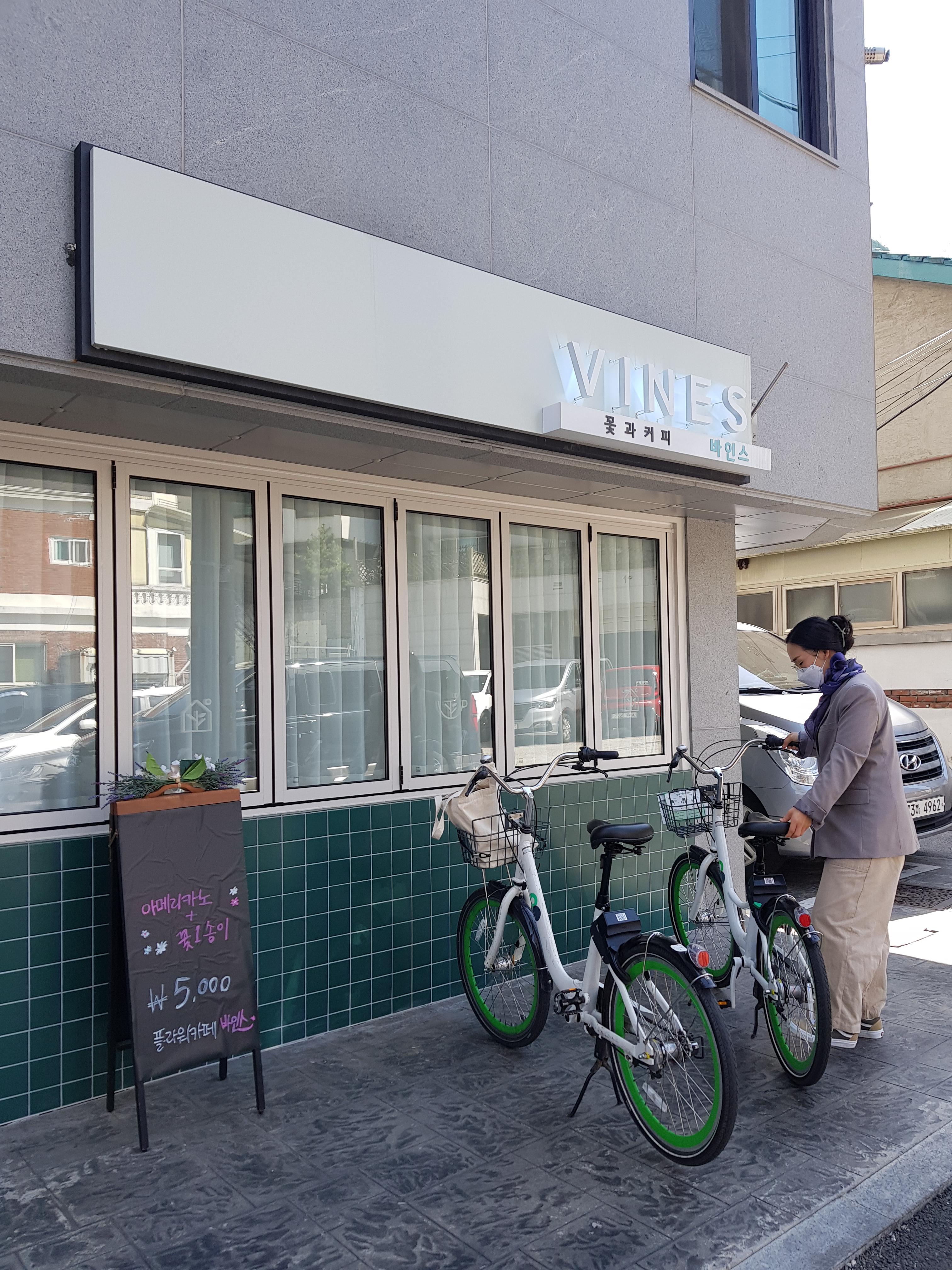사장님께서 내부 정리하실 때 타고 온 따릉이를 구석에 다시 옮기고 바인스 전경을 한 컷 찍어 봤습니다.