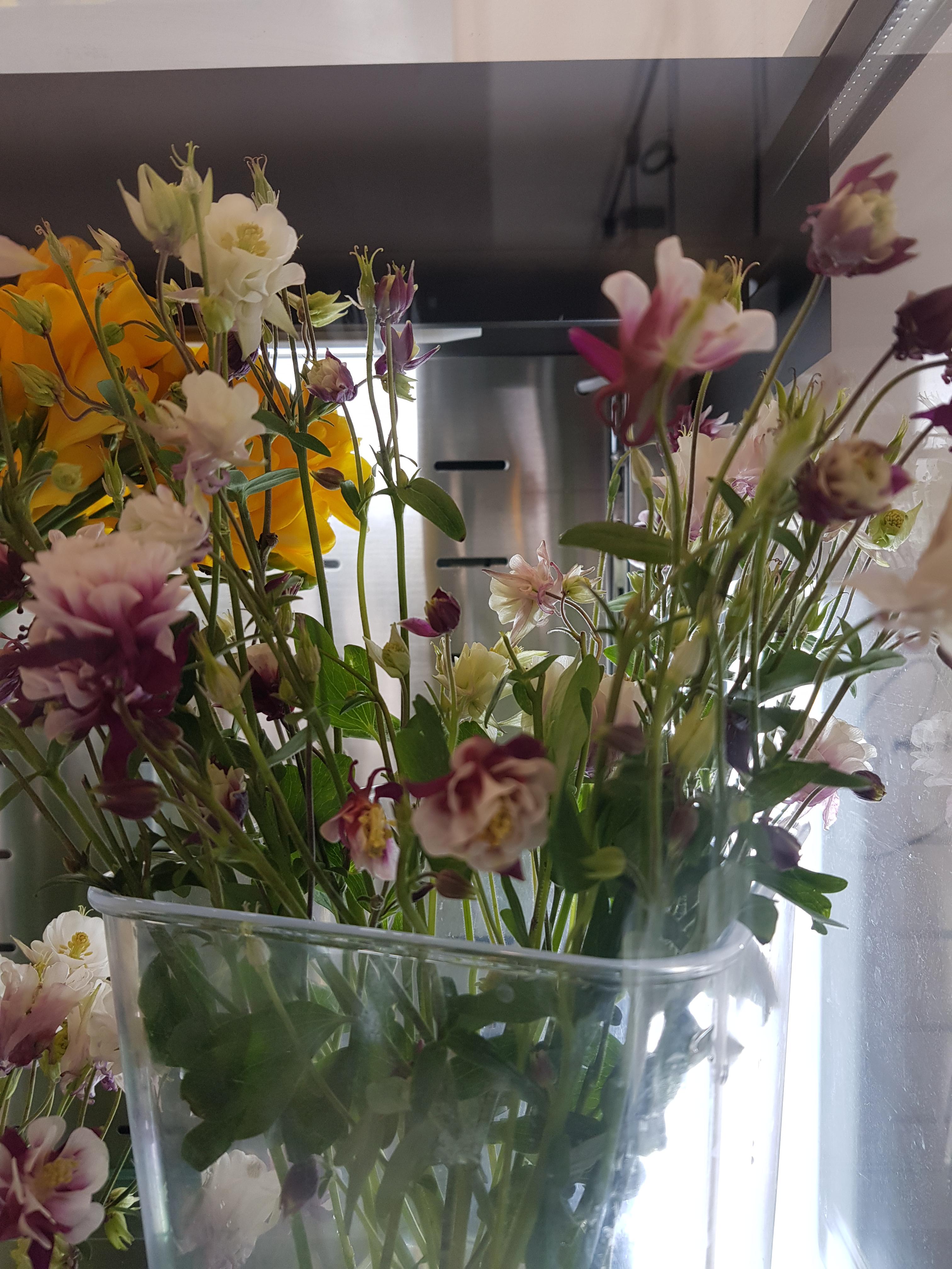 오늘 첫 만남을 가진 매발톱과 미스김 라일락도 같이 넣어서 이쁘게 꽃다발을 만들어 주셨습니다.