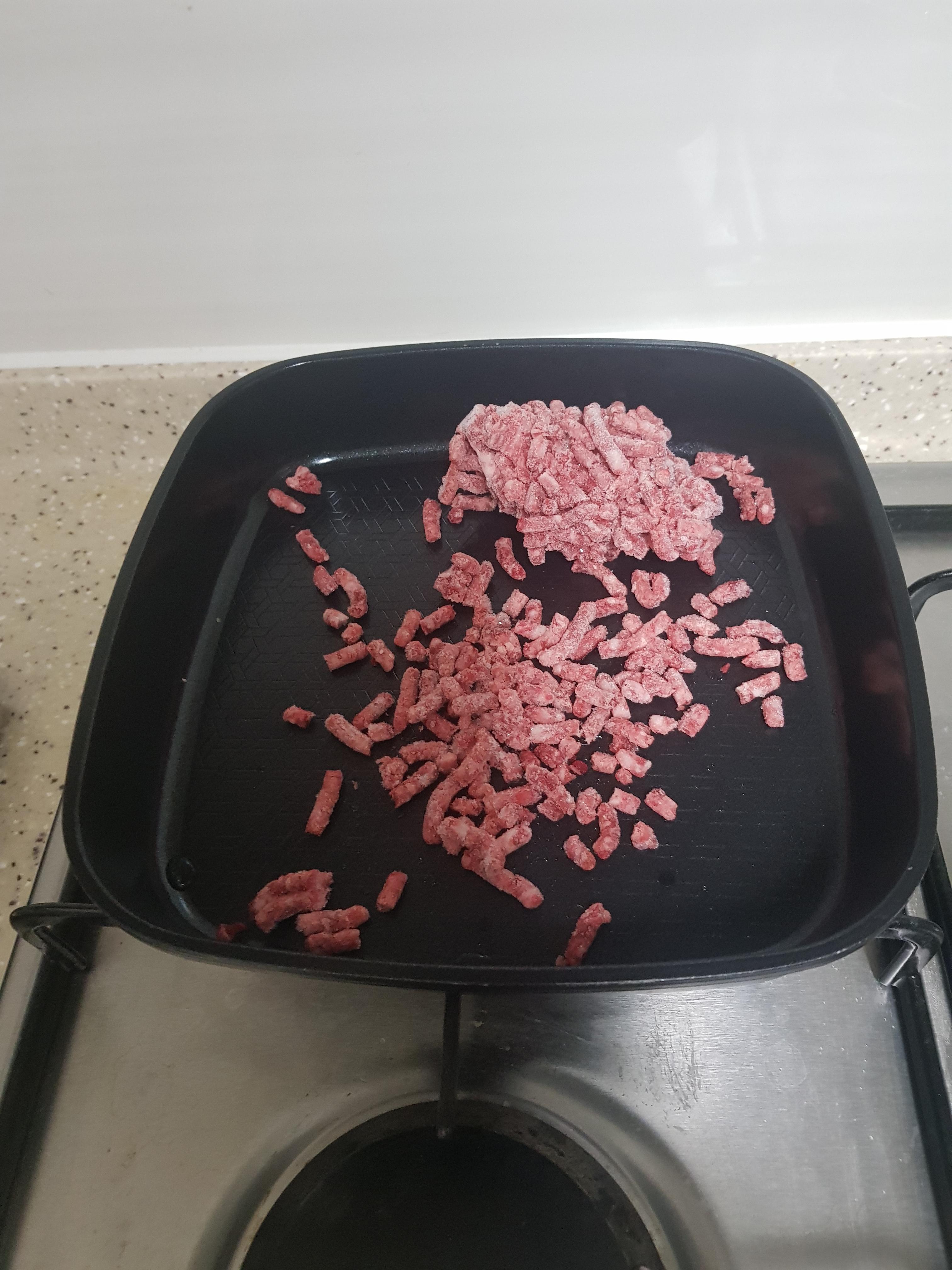 재료를 준비했으니 먼저 다진 고기를 볶아 보겠습니다.