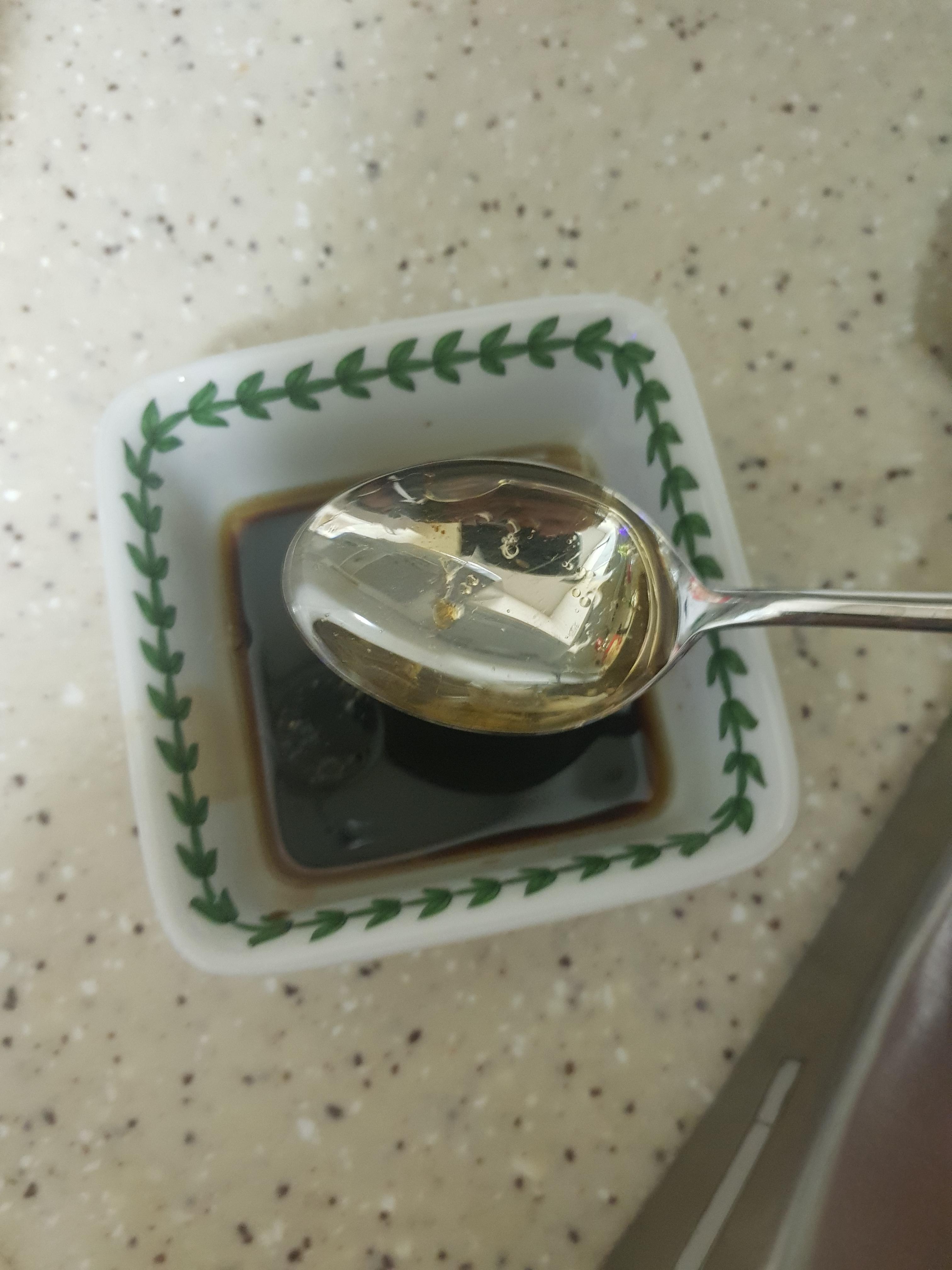 참기름 3숟가락, 간장 3숟가락 반, 식초 1숟가락 반, 설탕 2숟가락, 고추가루 반 숟가락, 깨 조금