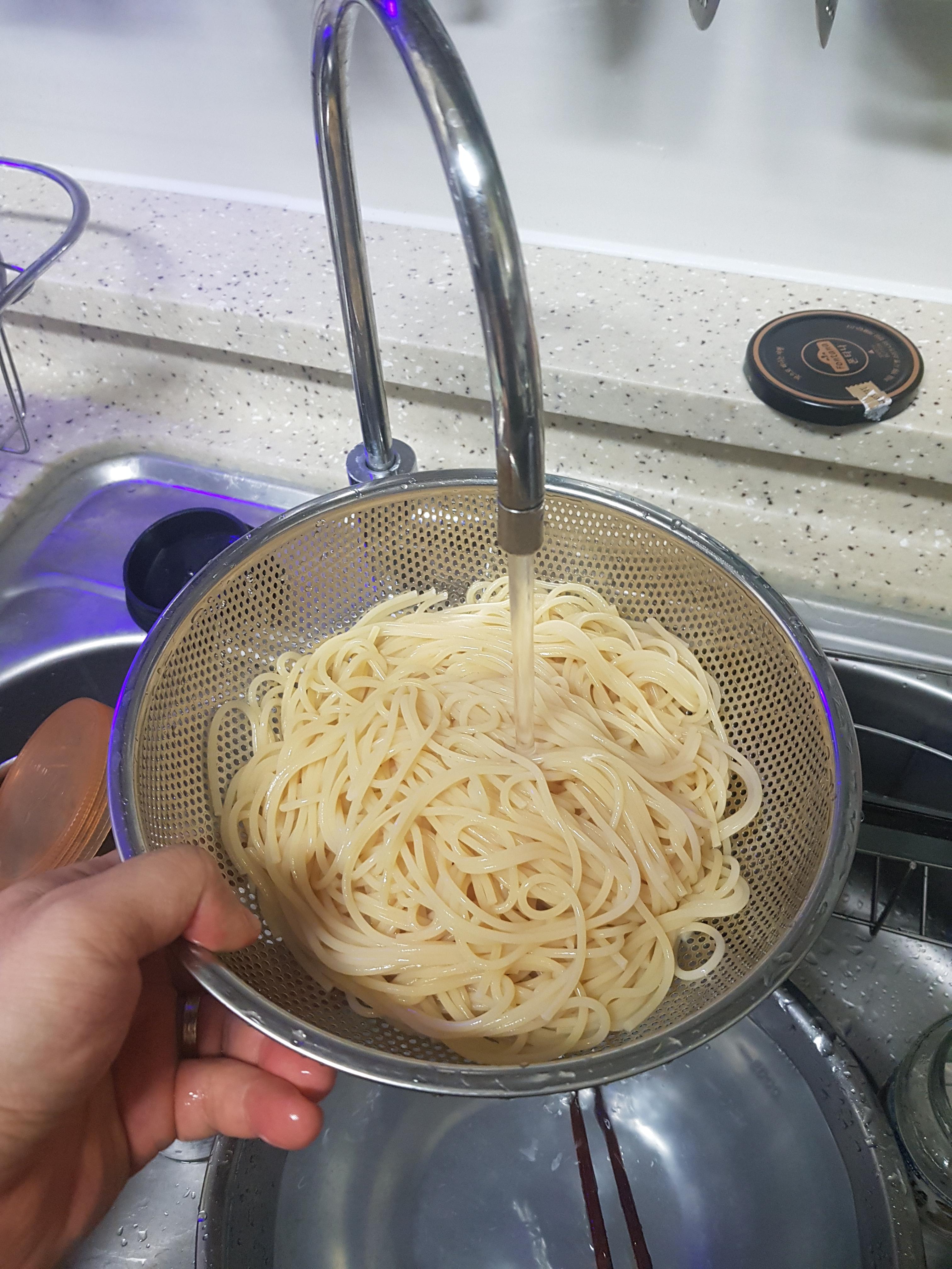 면을 잘 식히고 물기를 제거하면 이제 거의다 조리가 완료된 것입니다.