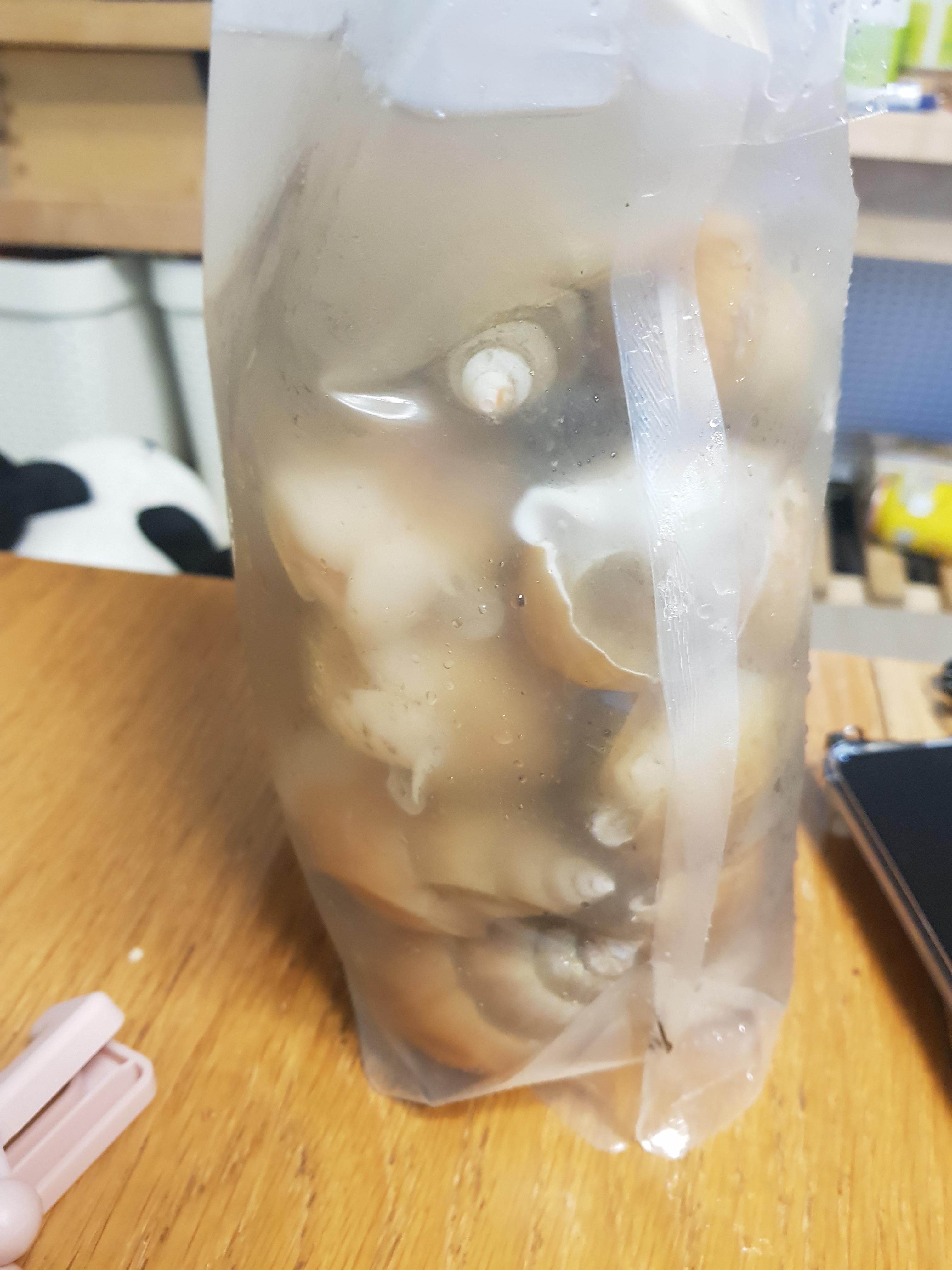 삶기 전이라 아직 쏙 숨어 들어가 있네요~^^