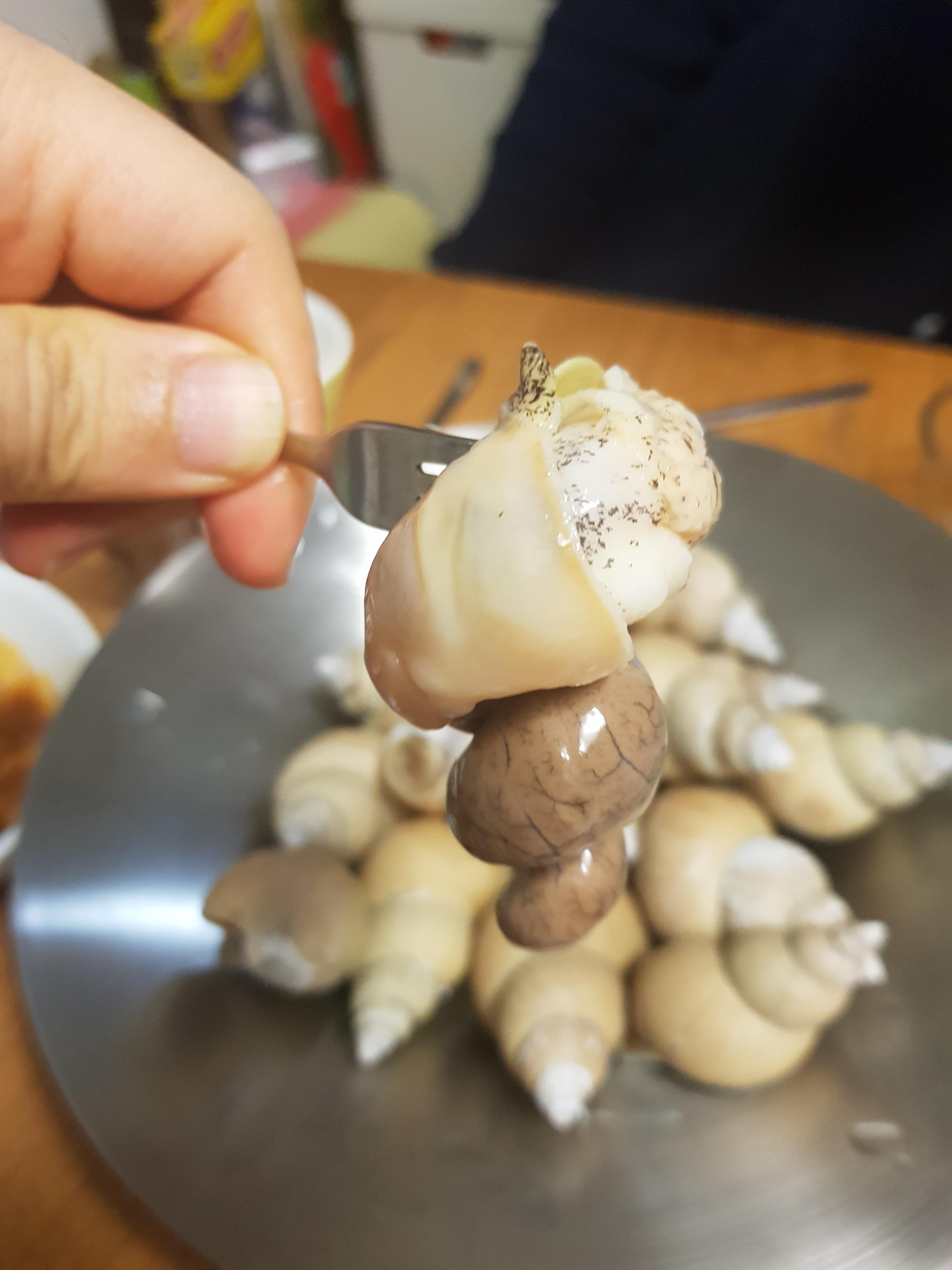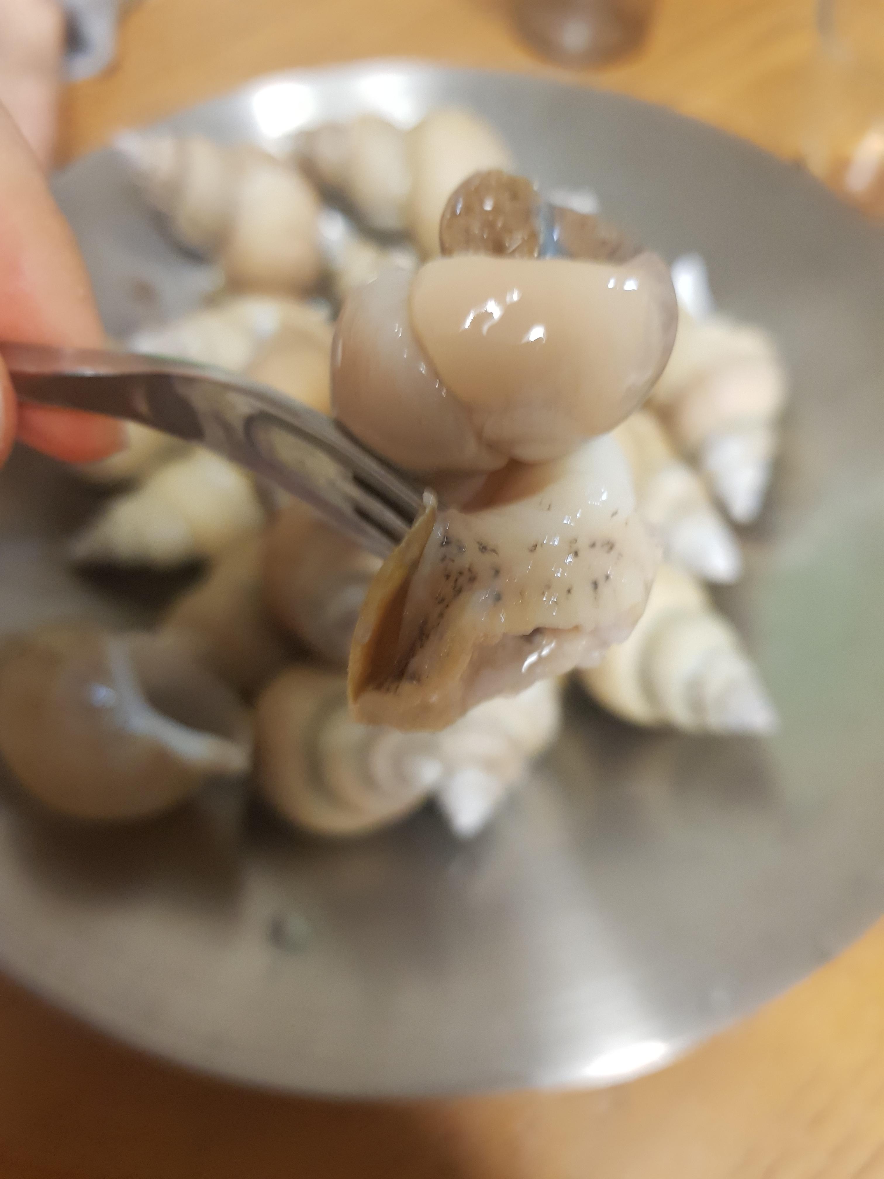 여기에 포크로 찍어서 살살 돌려주면 골뱅이가 나옵니다