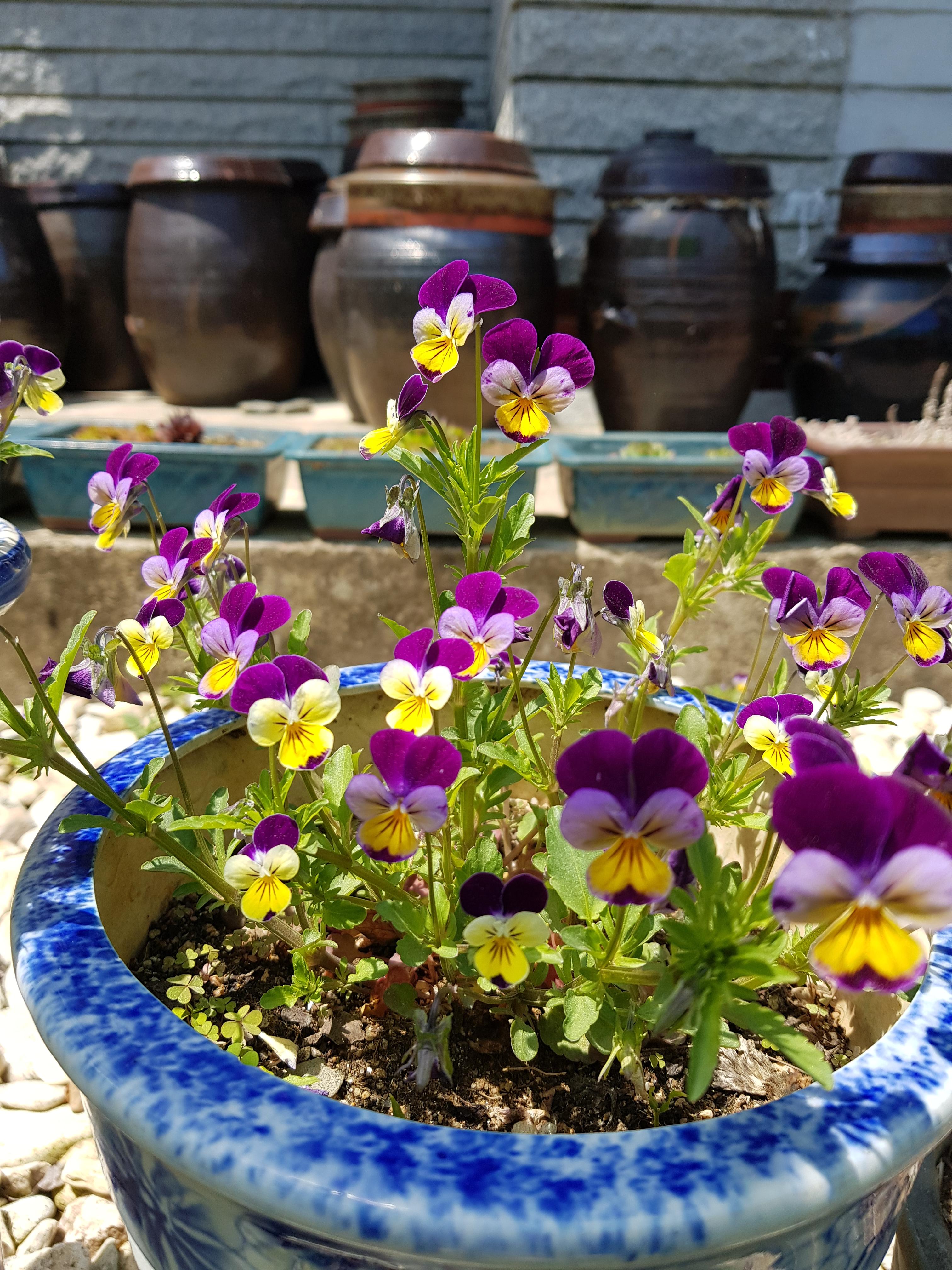 집 마당 테두리에 야생 펜지를 둘러서 심어놓으셨어요