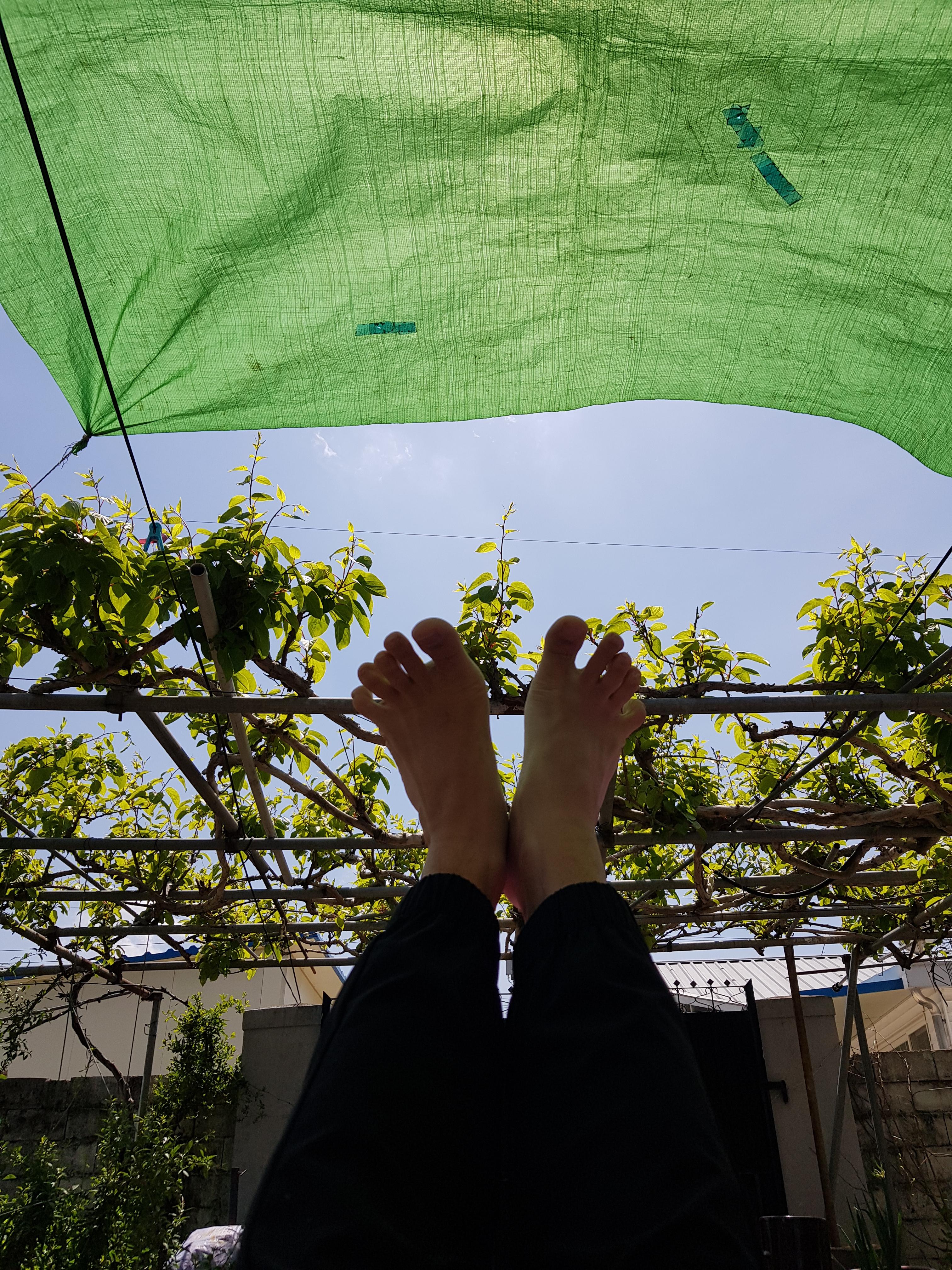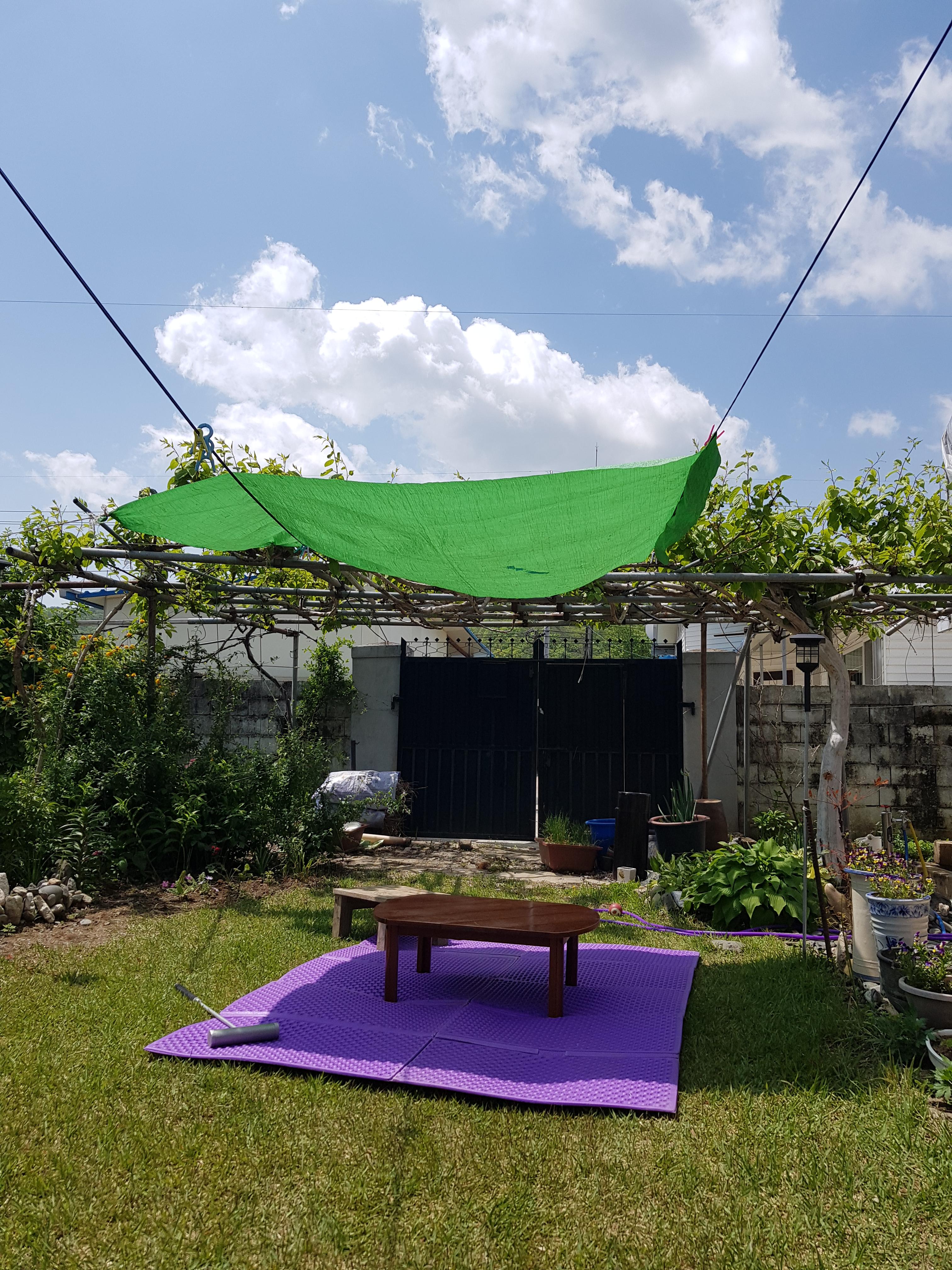 저는 식사자리를 다치우고 다시 마당에 누워 일광욕을 해보며 오랜만에 푸른 하늘을 구경합니다
