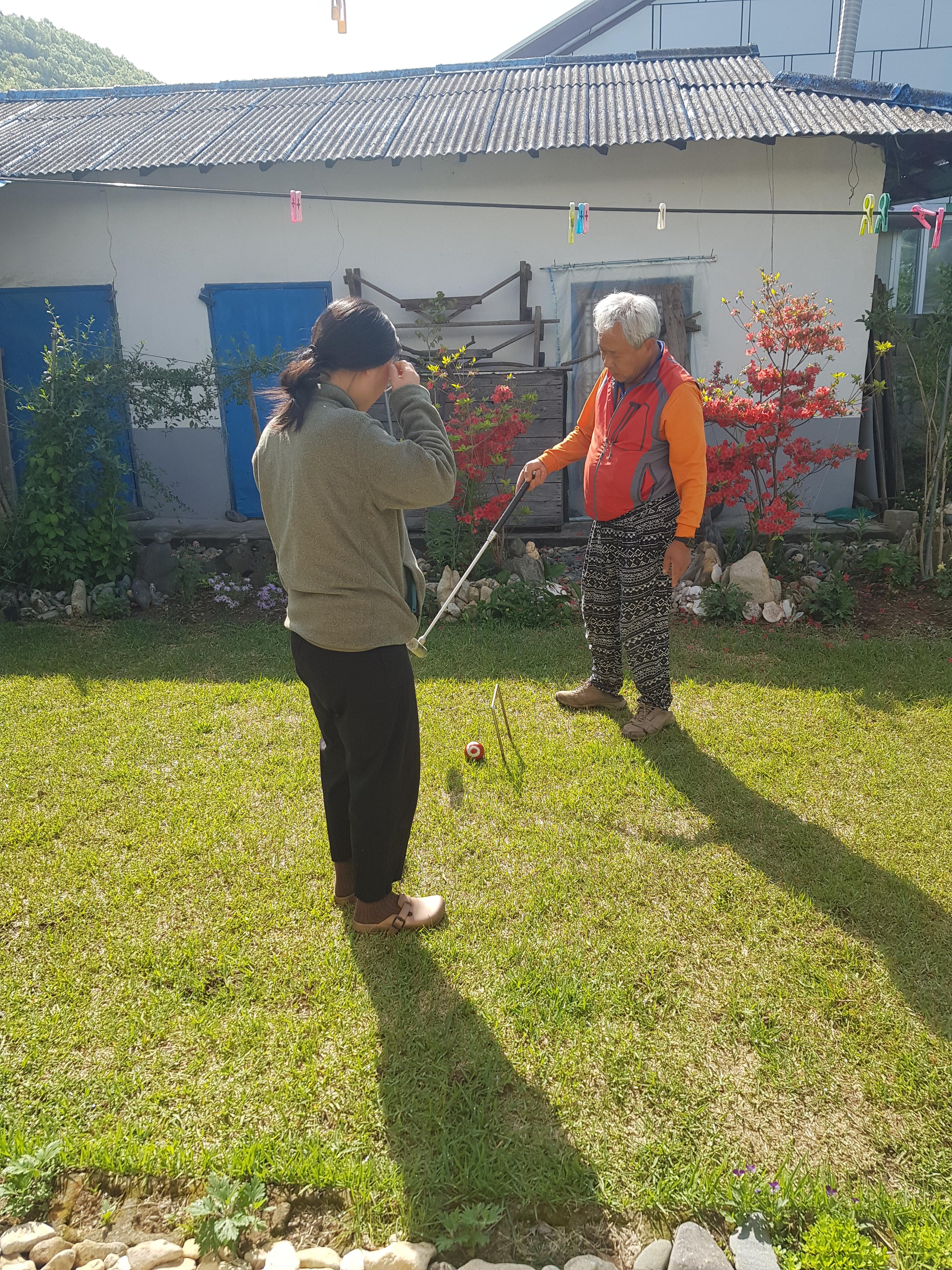 아침에 아내와 아버지는 게이트볼 설명 삼매경입니다