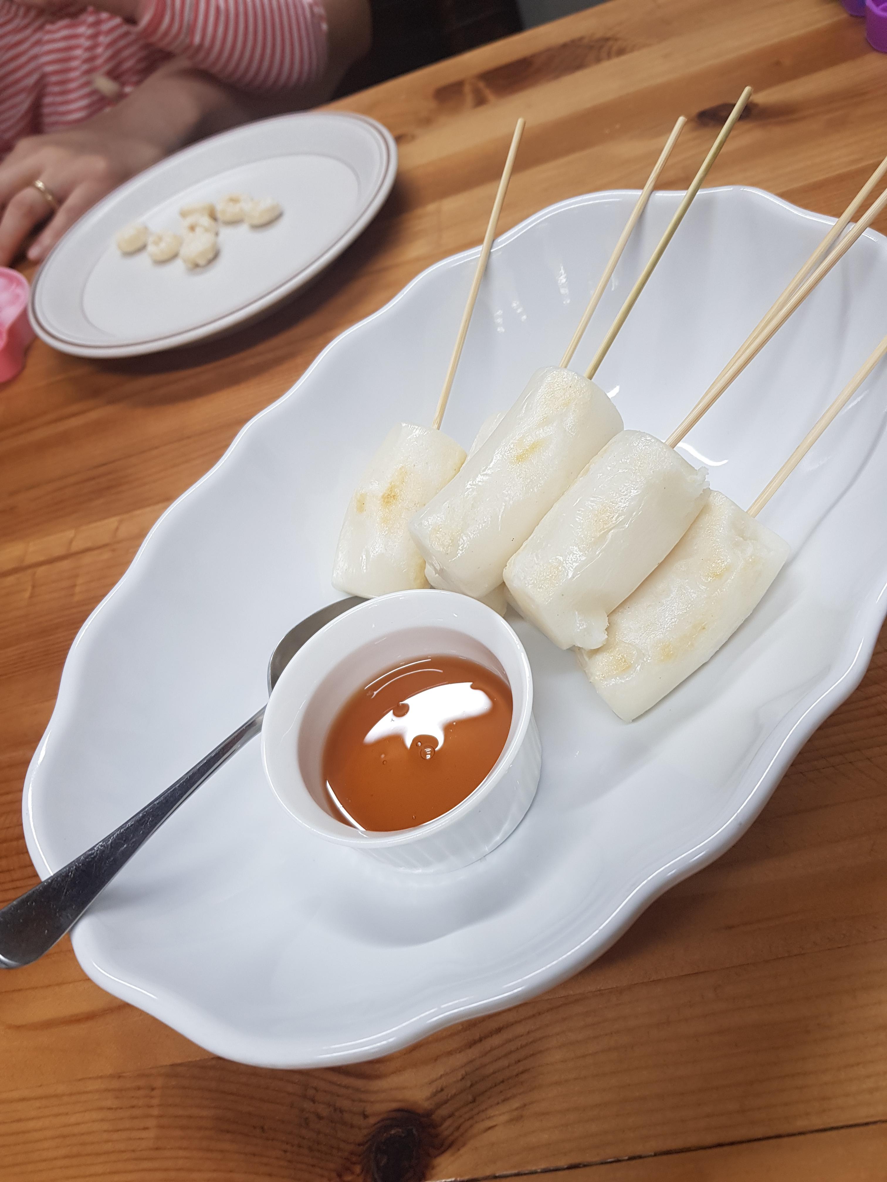 여기 떡볶이는 가래떡을 잘라서 만들었어요