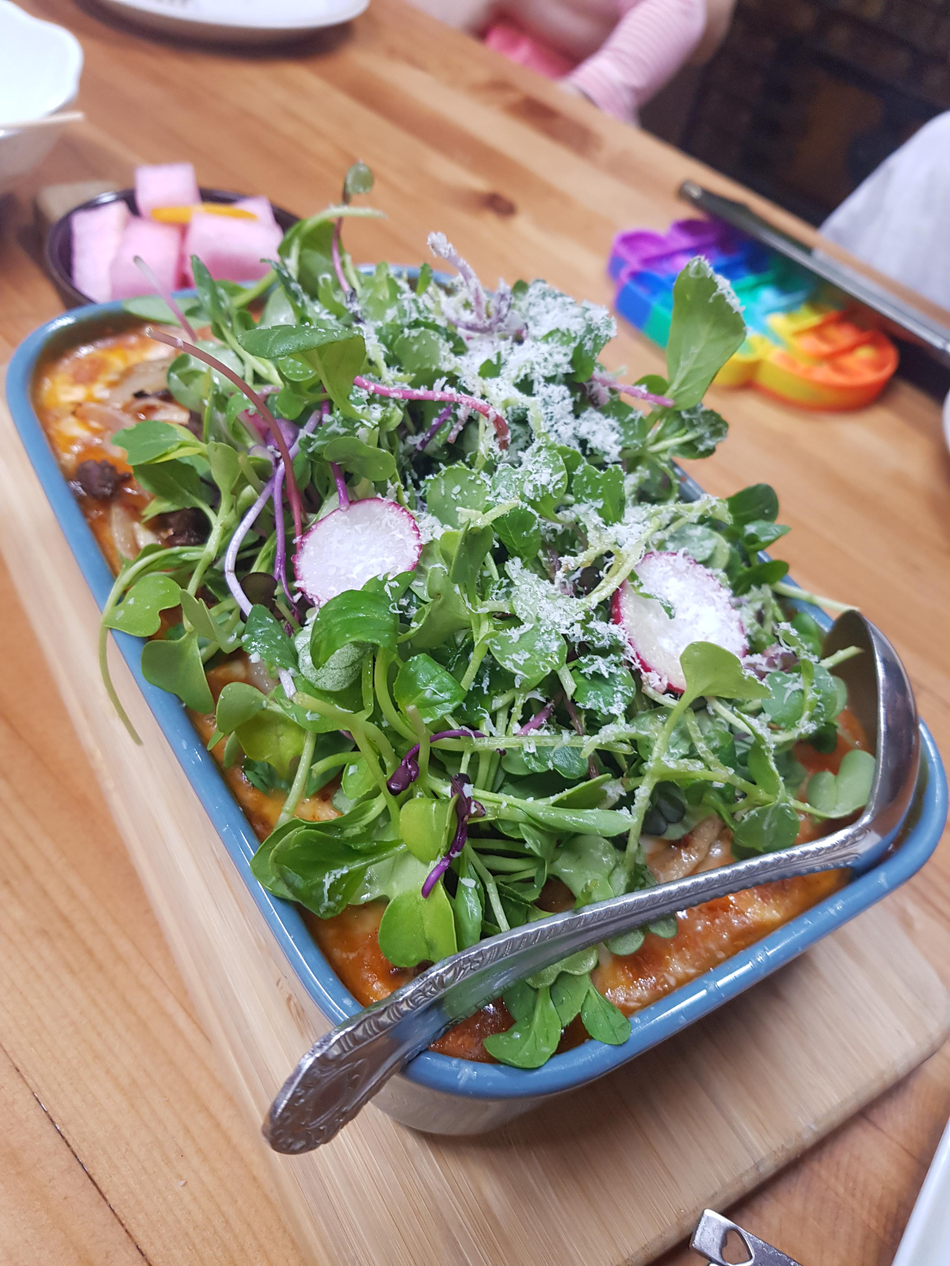 그리고 소고기 고명과 새싹나물 비슷한게 올려져 있답니다