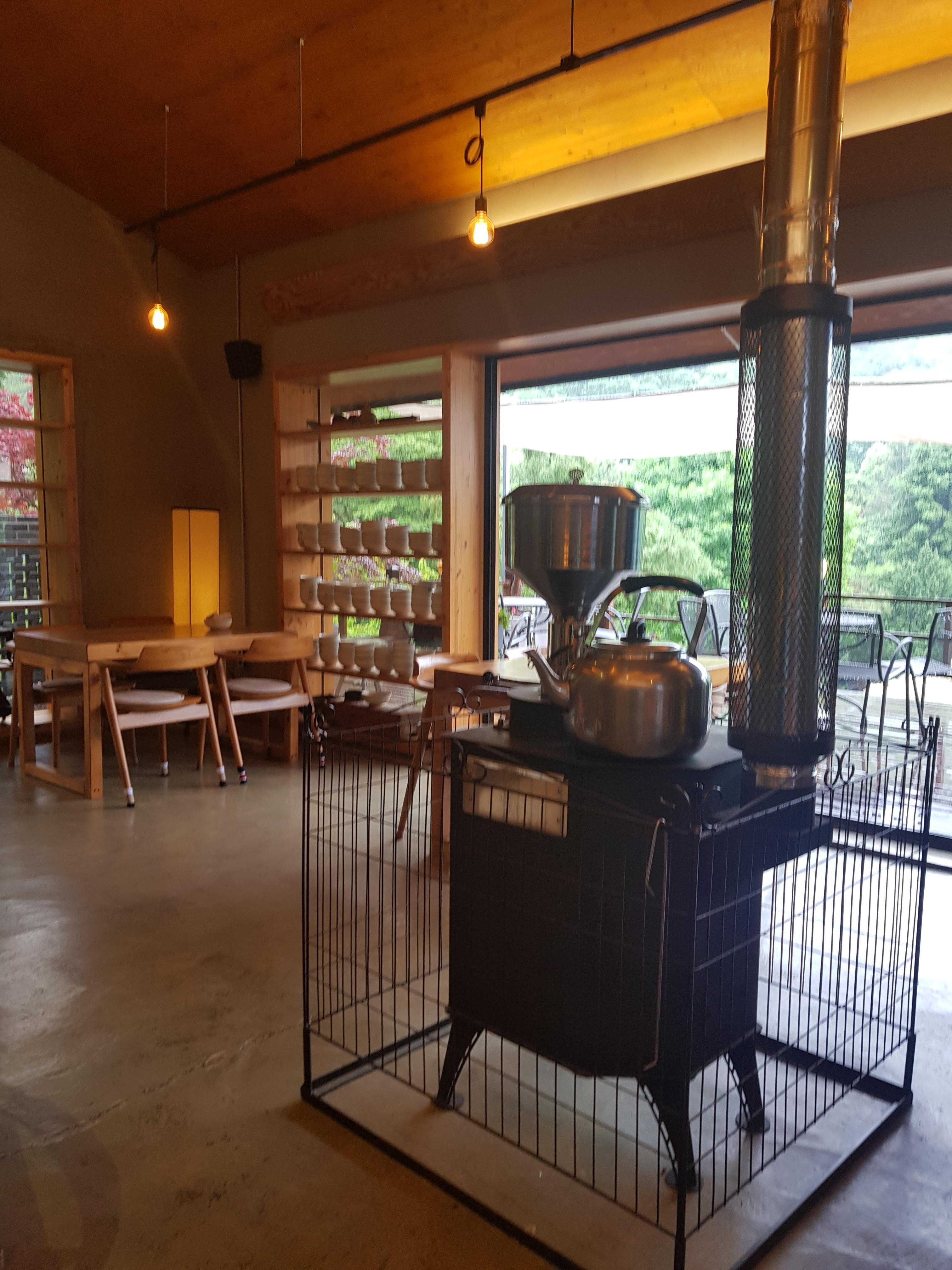 내부 홀 중앙에는 난로와 따뜻한 차가 주전자에 준비되어 있답니다