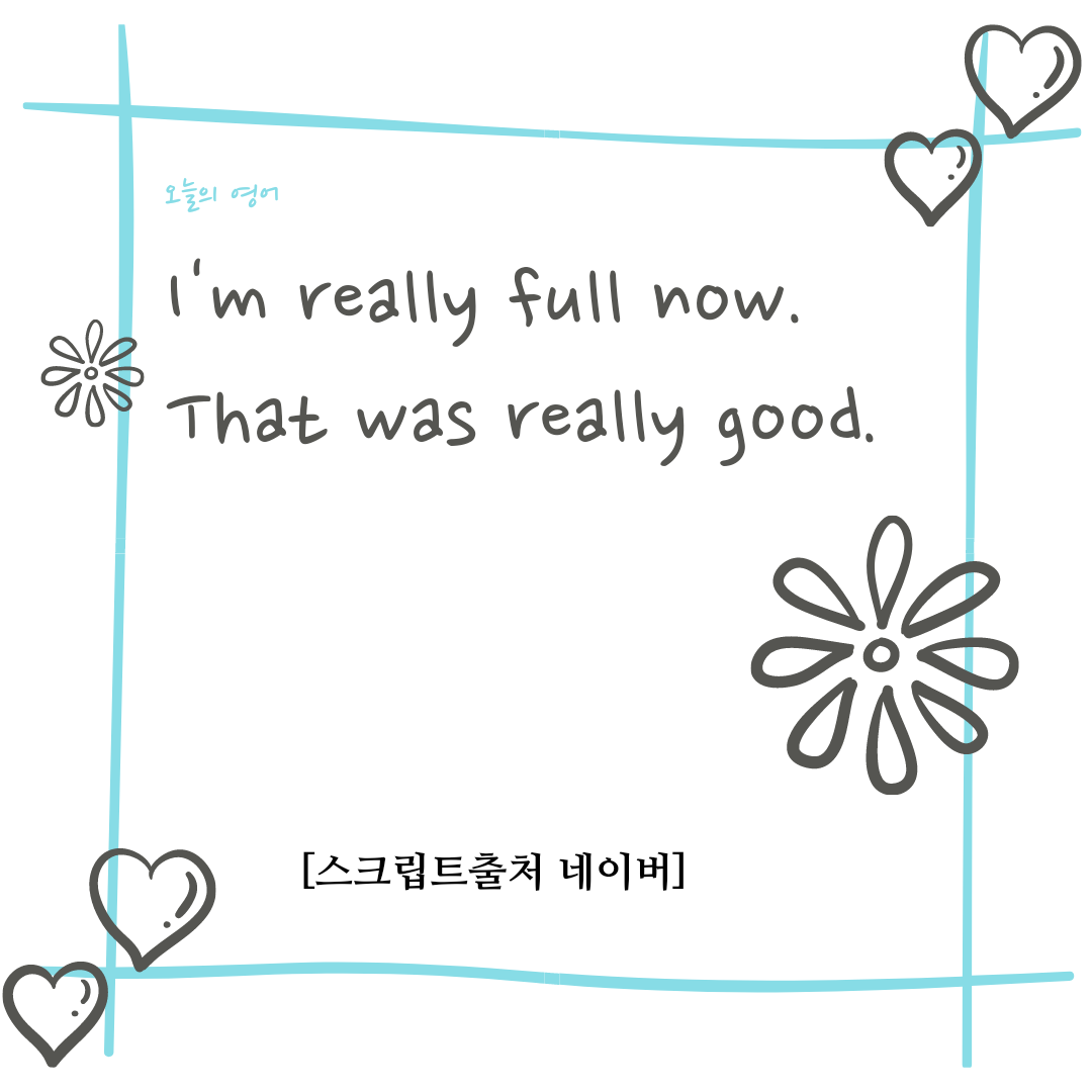 나 정말 배불러. 정말 맛있었어.