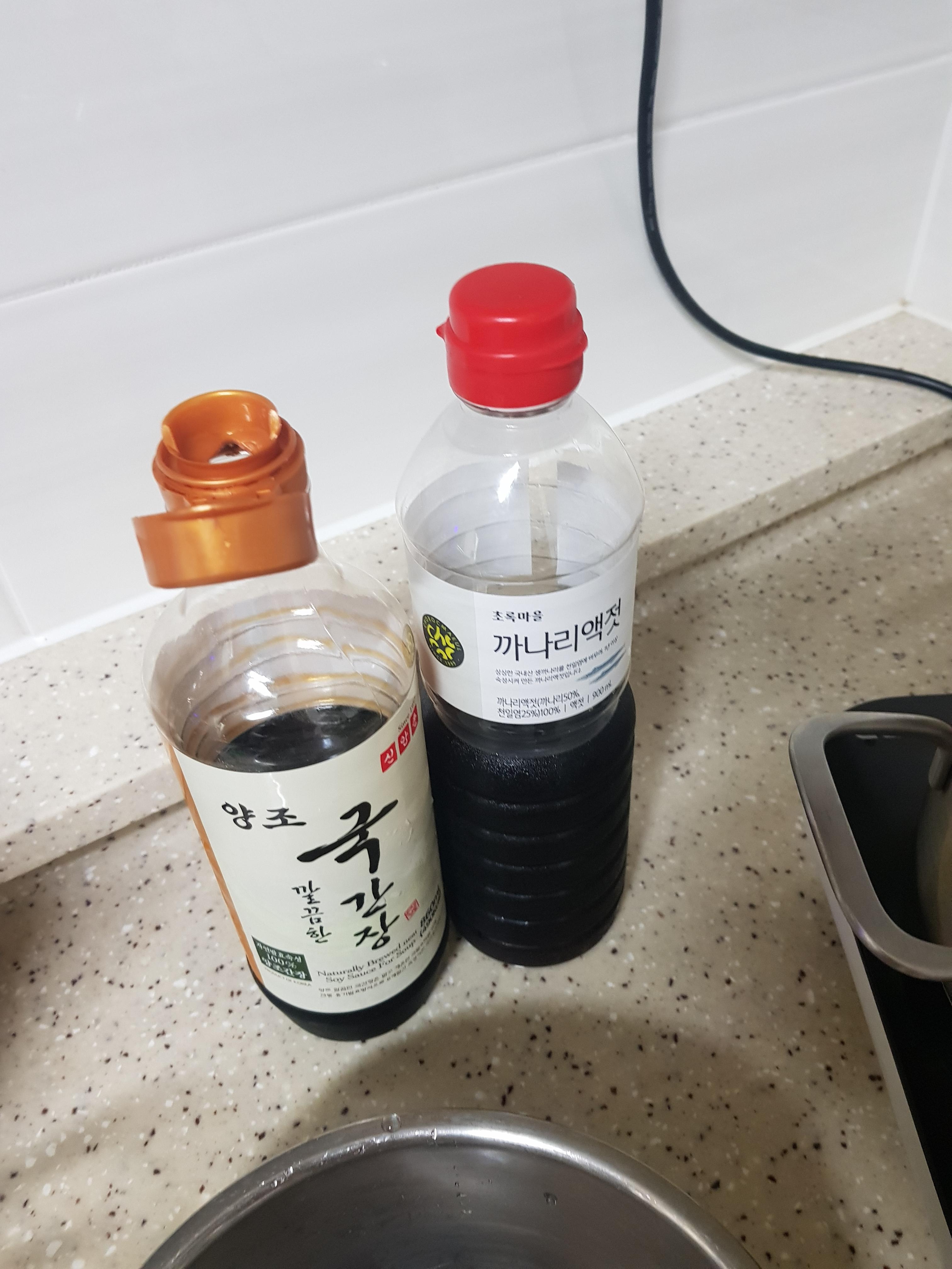 미리 준비한 국간장과 까나리액젓을 한 숟갈씩 넣어줍니다