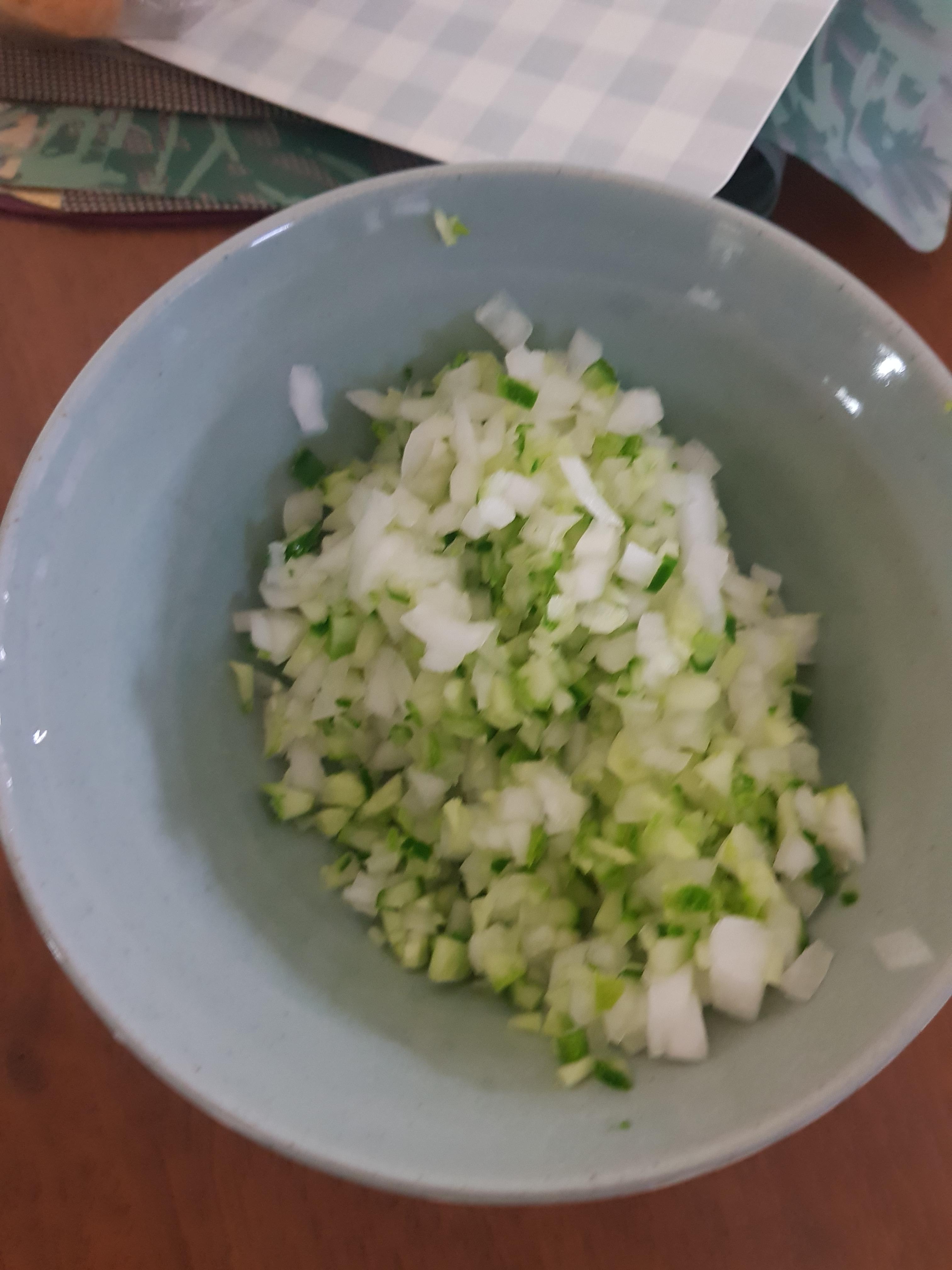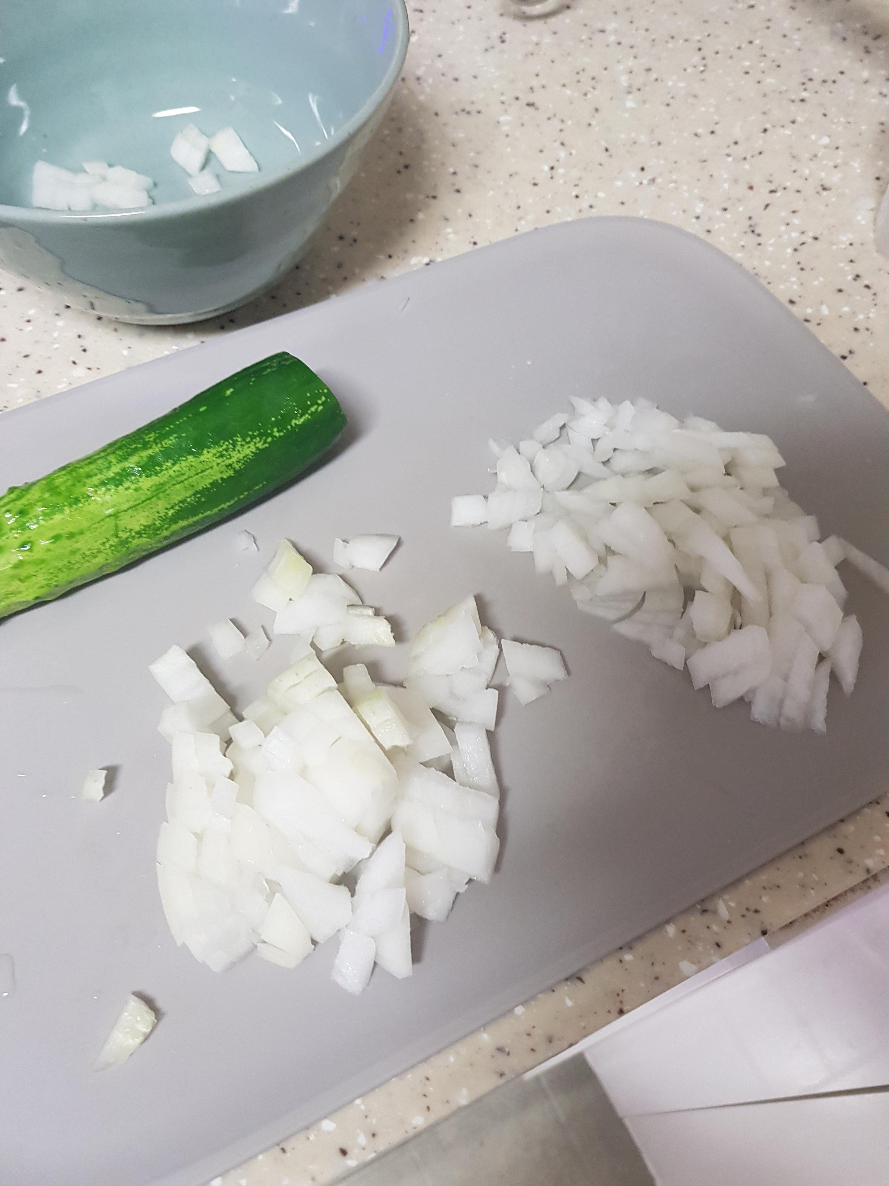 오이 반 개와 양파 반 개를 토막썰기후에 한 번더 다지기를 했네요