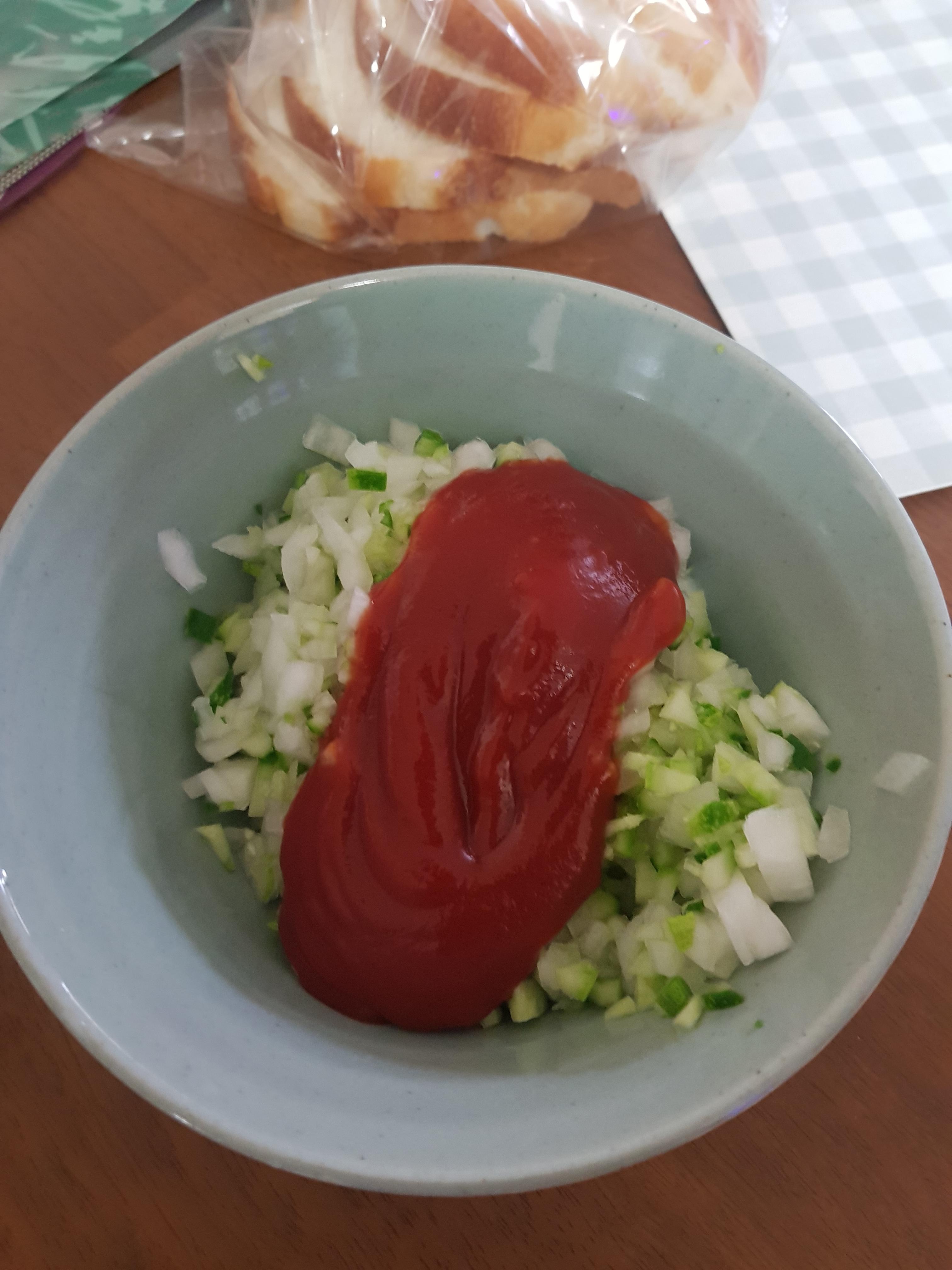 그럼 케찹을 다져진 오이와 양파에 적당량을 넣어 주세요