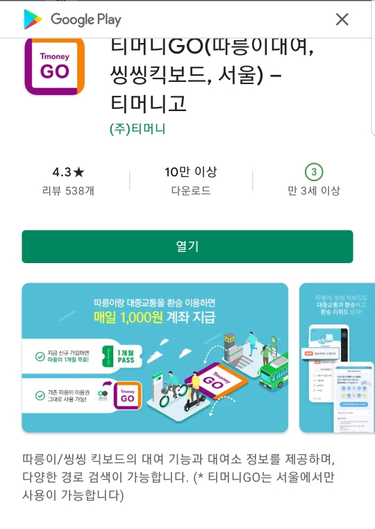 티머니GO 어플이 없다면 플레이 스토어와 애플 스토어에서 '티머니GO'를 찾아서 설치 해주시면 됩니다