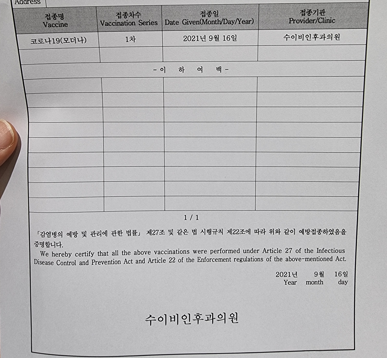 이상 2021년 9월 16일 코로나19 모더나1차 접종 후기를 남깁니다~^^