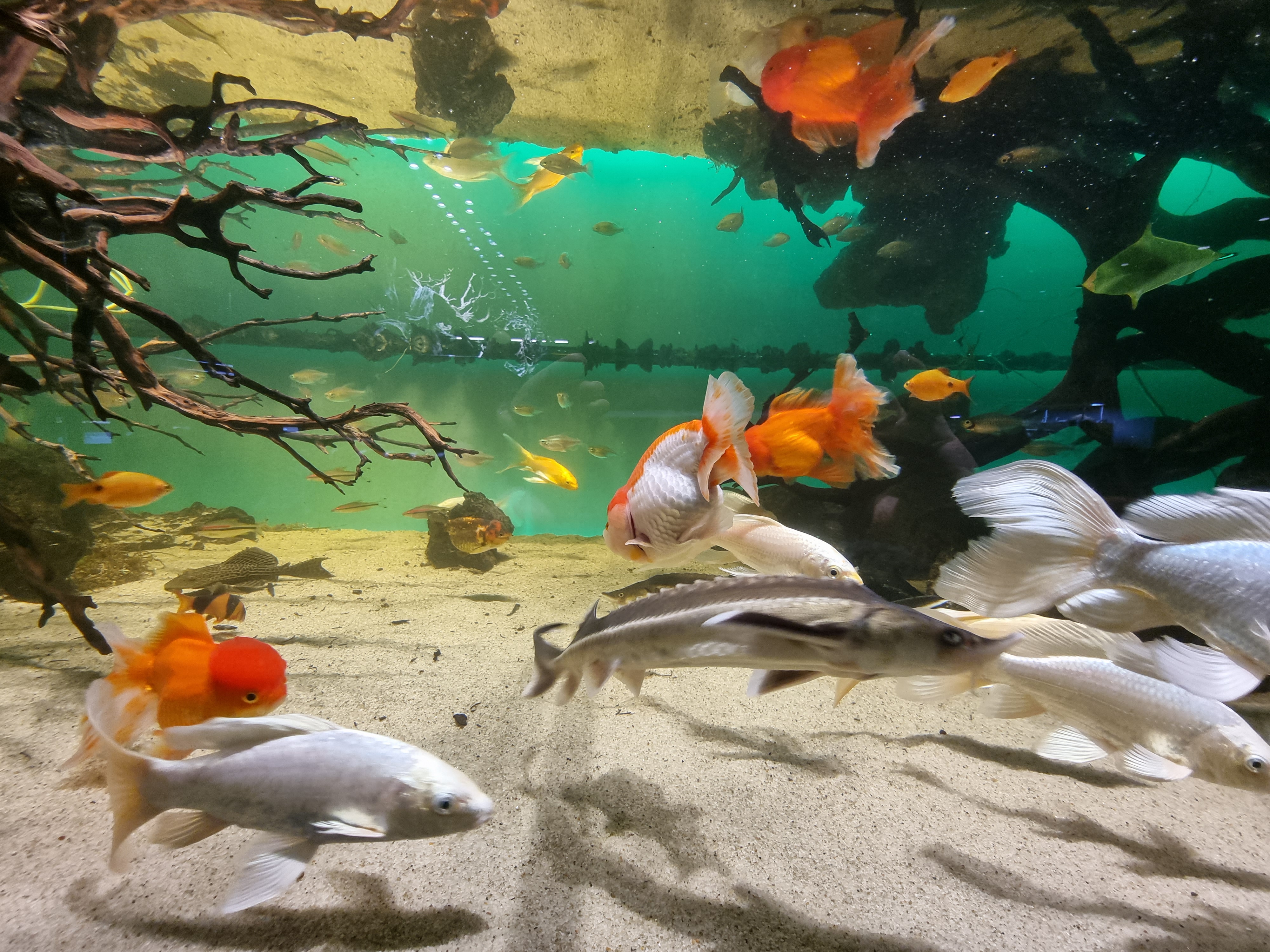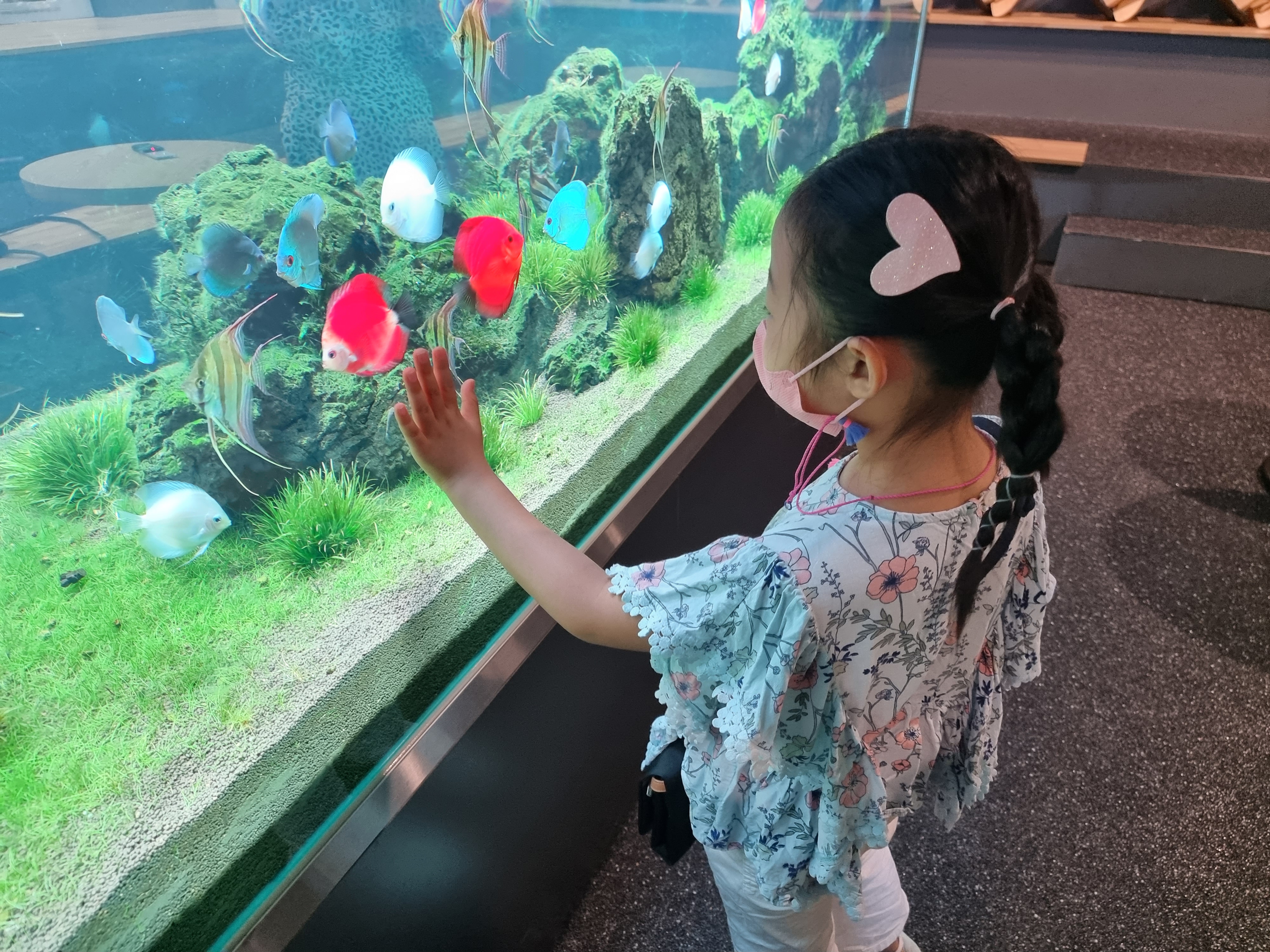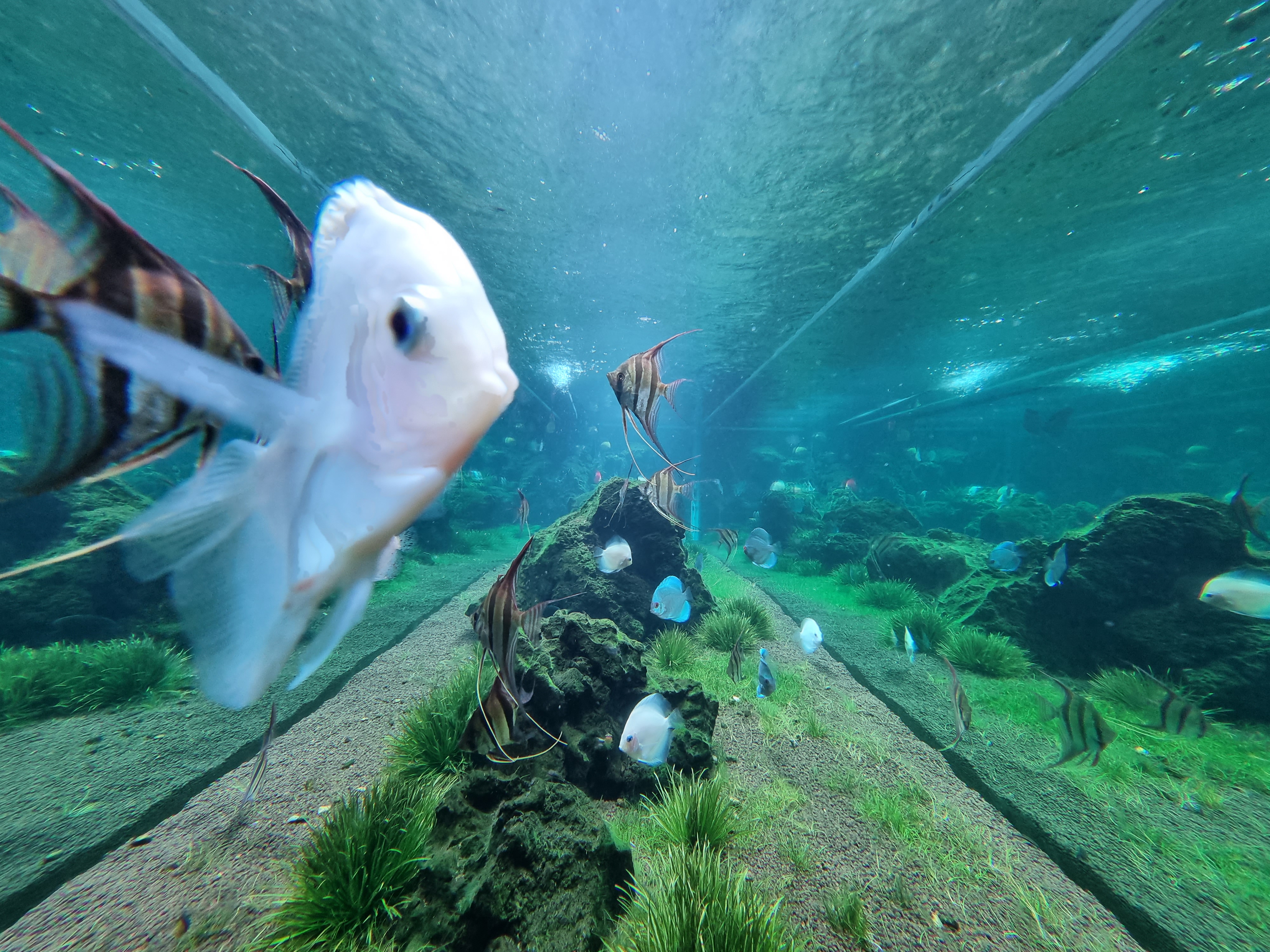 어항속 사진을 찍는데 물고기와 마주칩니다 ㅎㅎ