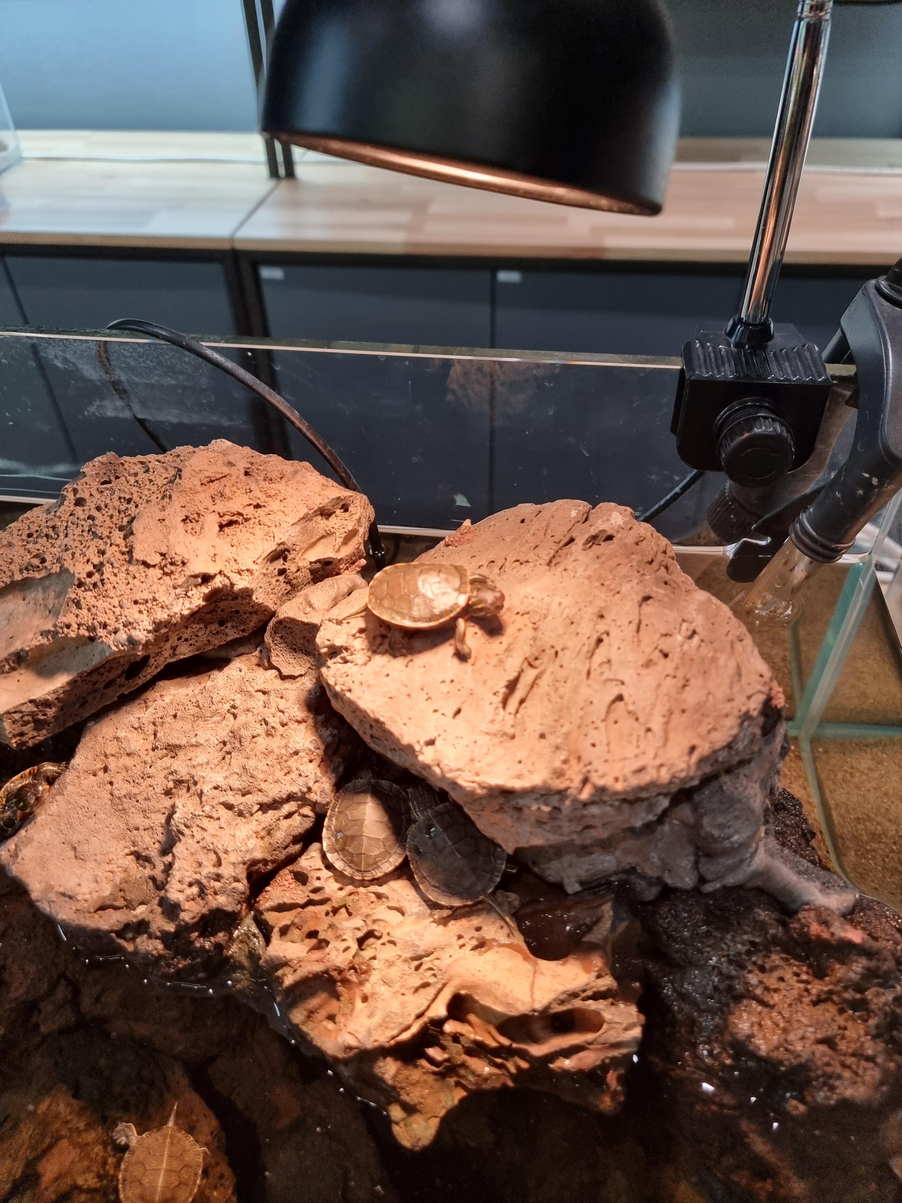 다른 곳을 보니 준비된 조명아래서 일광욕을 하는 거북이들을 만납니다