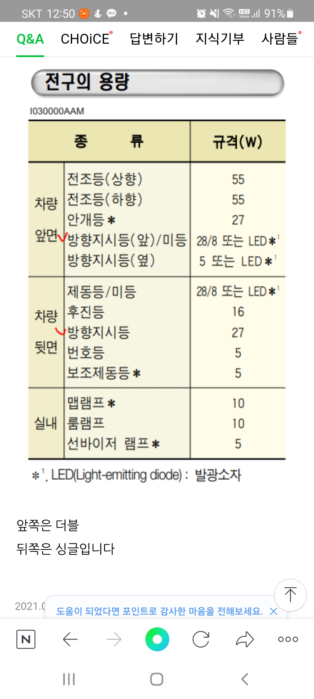 혹시 몰라서 쏘울 2010년형 전구규격을 확인해봅니다