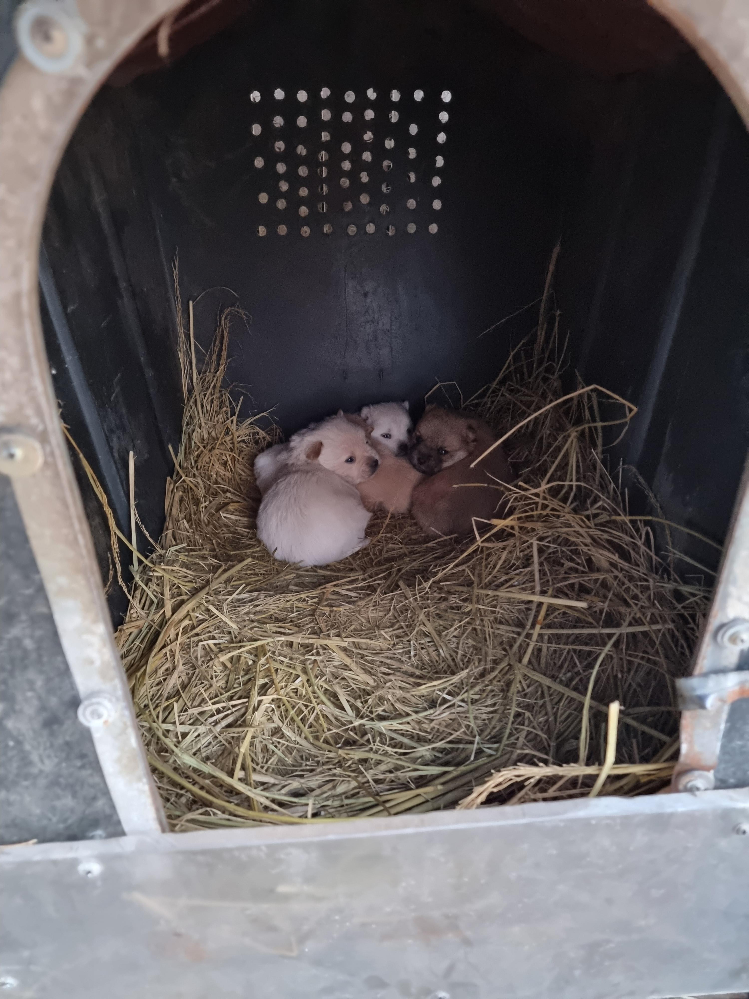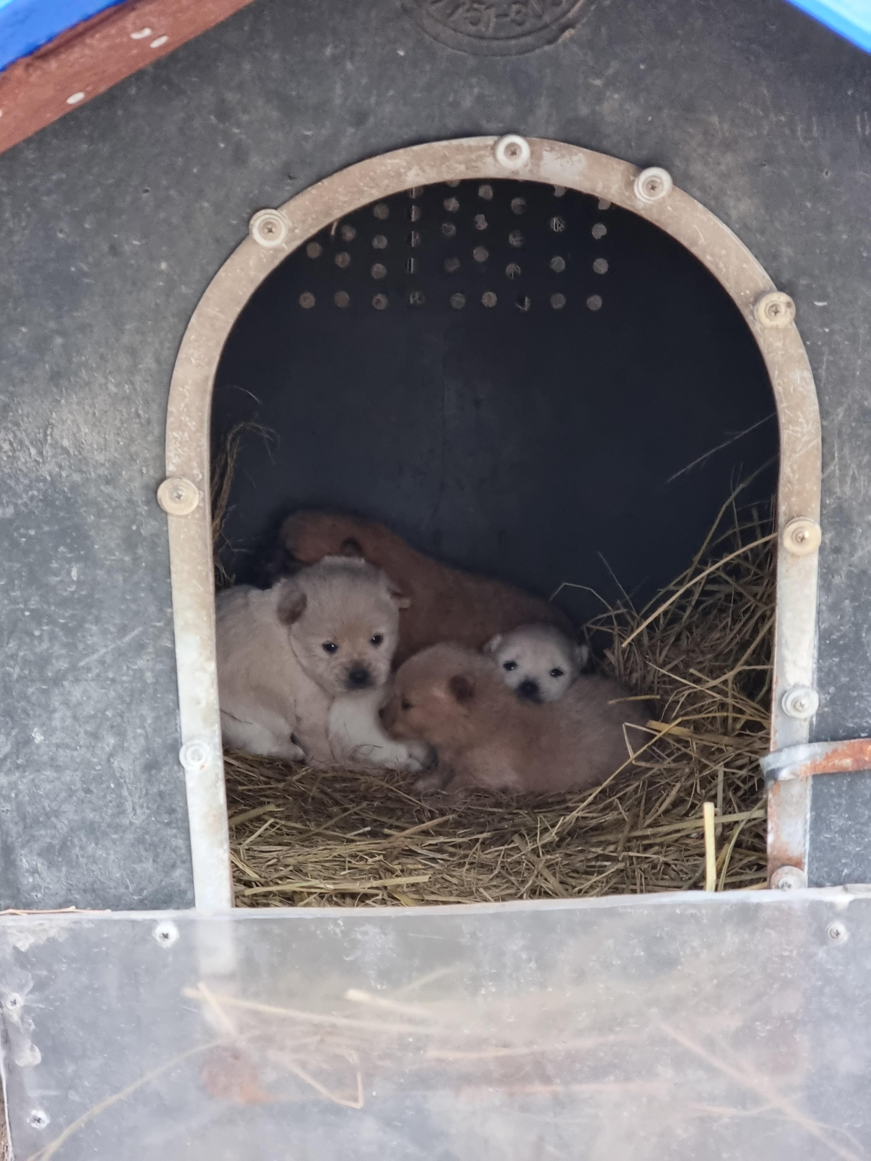 추위에 4마리의 새끼들이 똘똘뭉쳐 있답니다