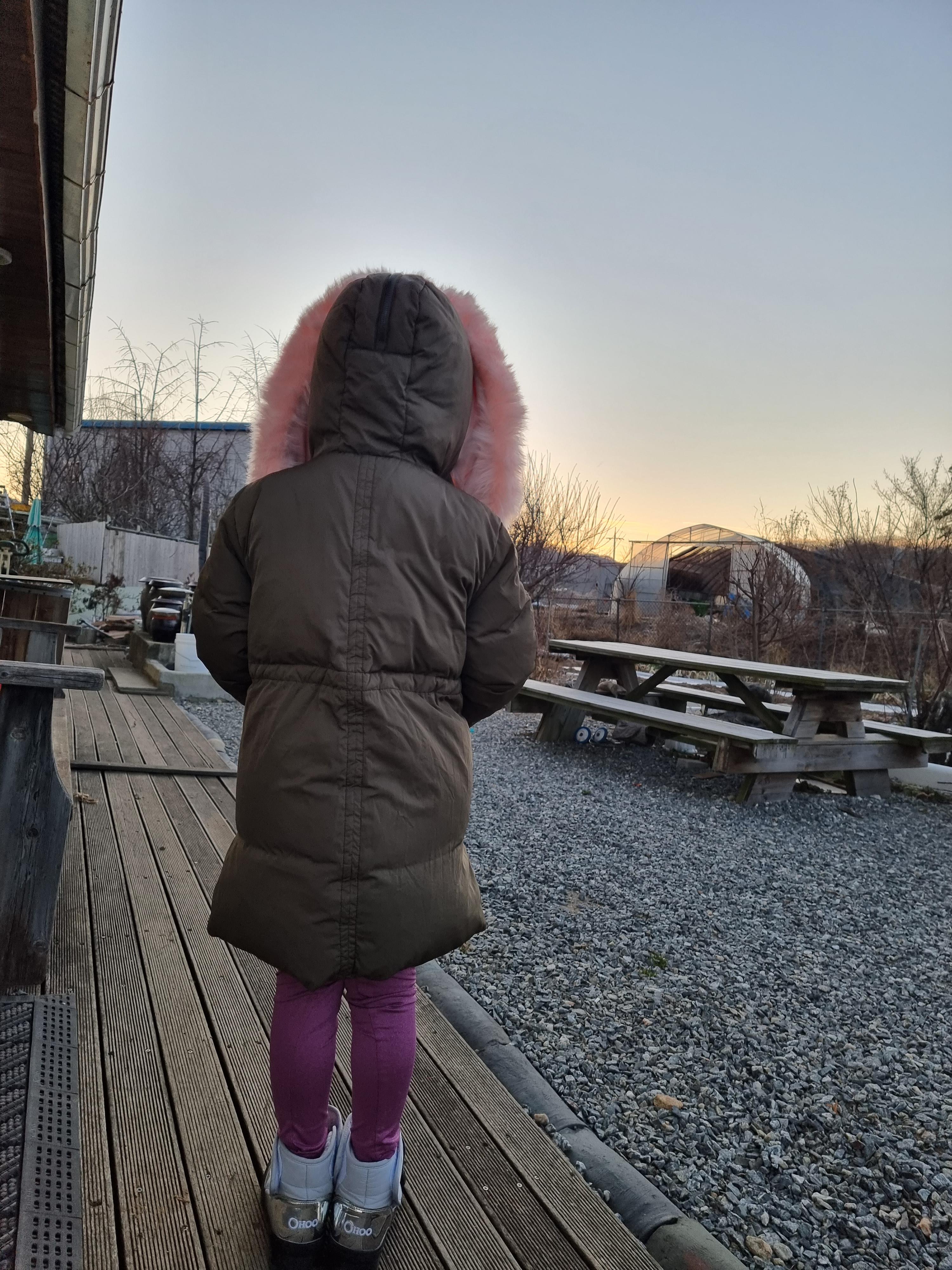 조카는 겉외투를 입고 밖으로 나왔습니다