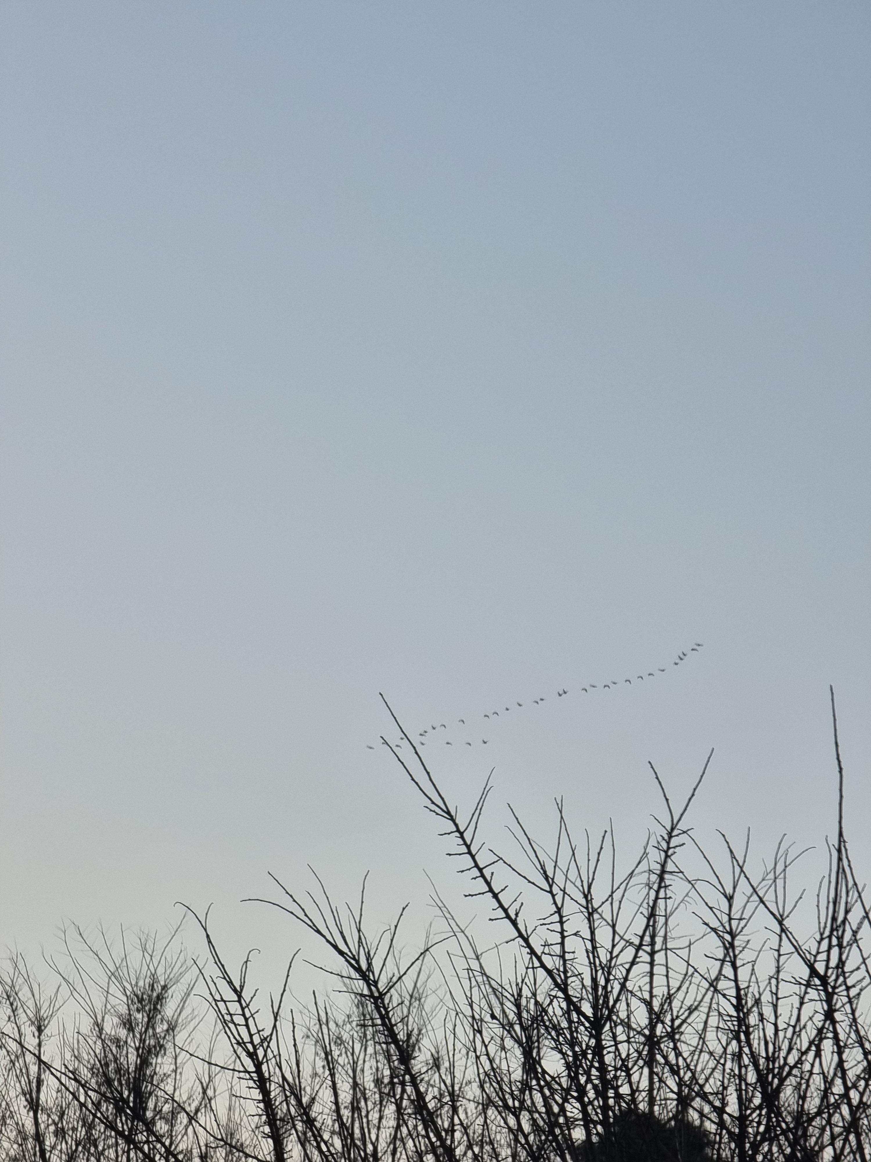 동이 트는 아침 하늘 철새를을 만나다