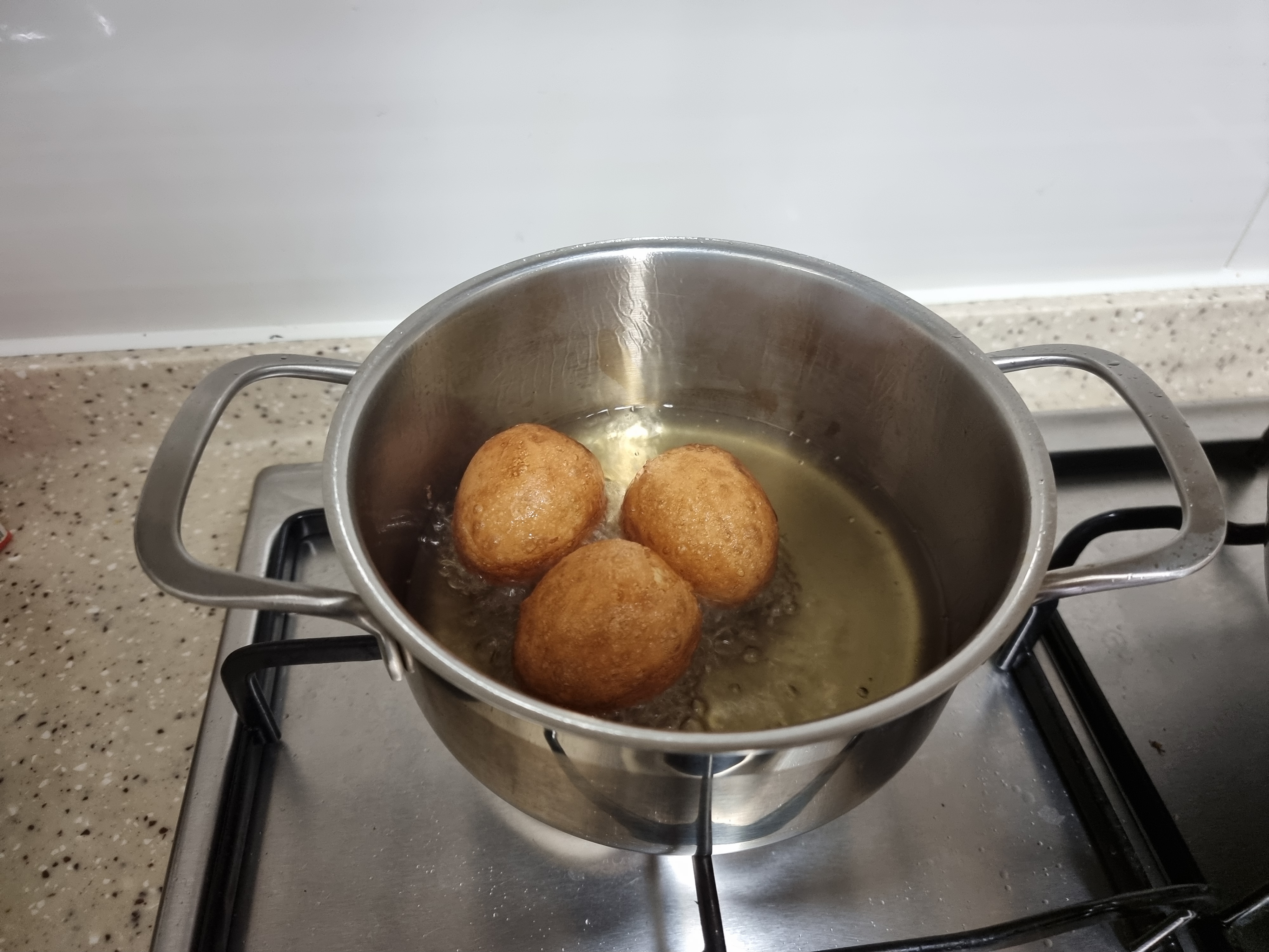 집에 온도계가 없어어 중불에 기름 넣고 끓이다 계란을 넣었어요