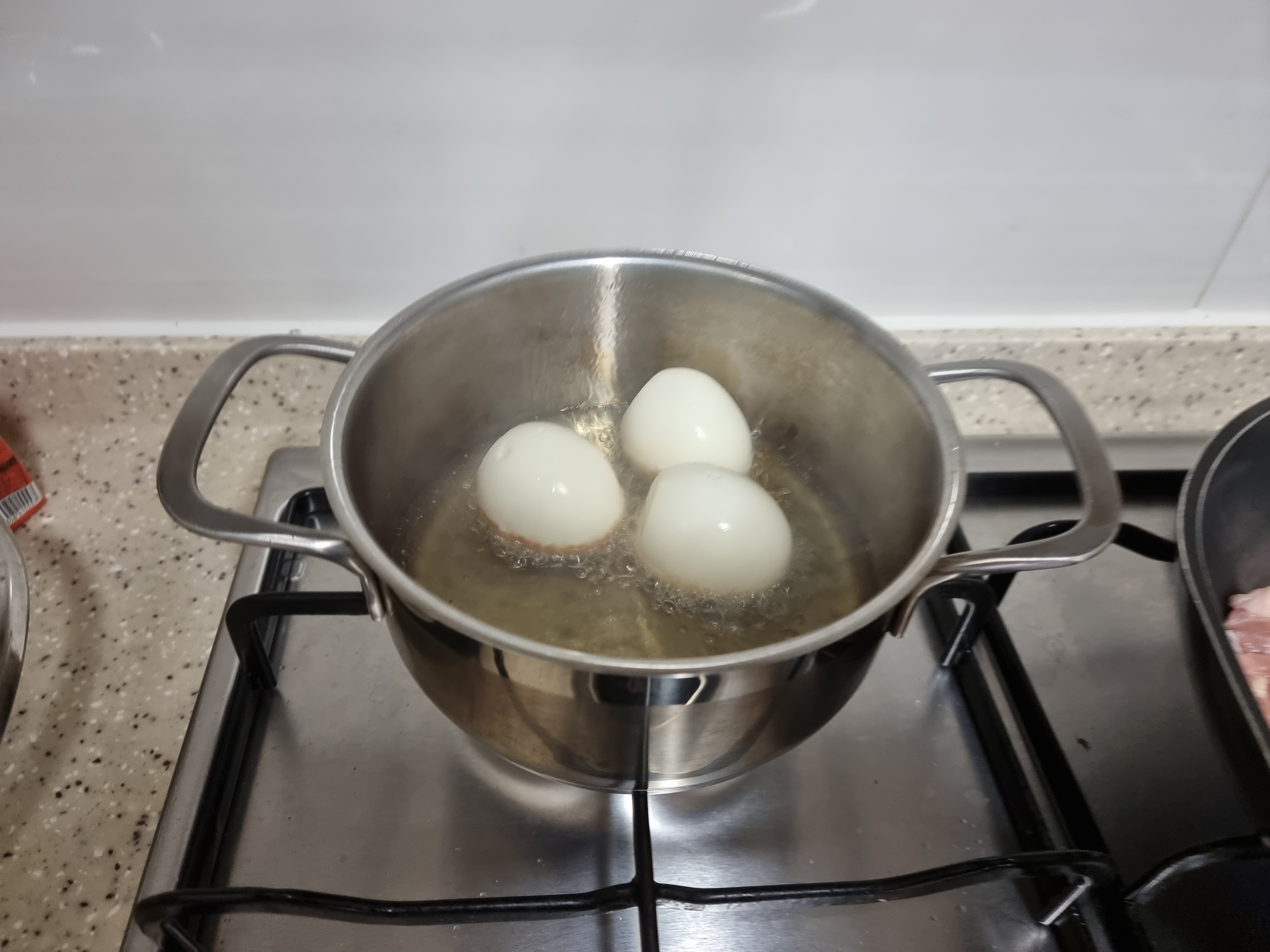 감동란을 까서 계란에 칼집을 낸다음에 튀겨야 합니다