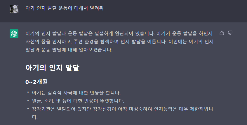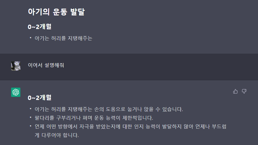 이번에는 아기의 성장에 관해서 모르는 부분이 많아서 챗GPT에 물어봤습니다.