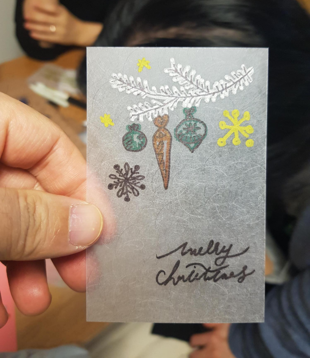 짜잔~ 색깔별 펜으로 은색, 노란색, 녹색, 빨간색으로 색칠을 해보았습니다. 메리 크리스마스~~ 과연 이 작품은 어떻게 변하게 될지 기대되네요.