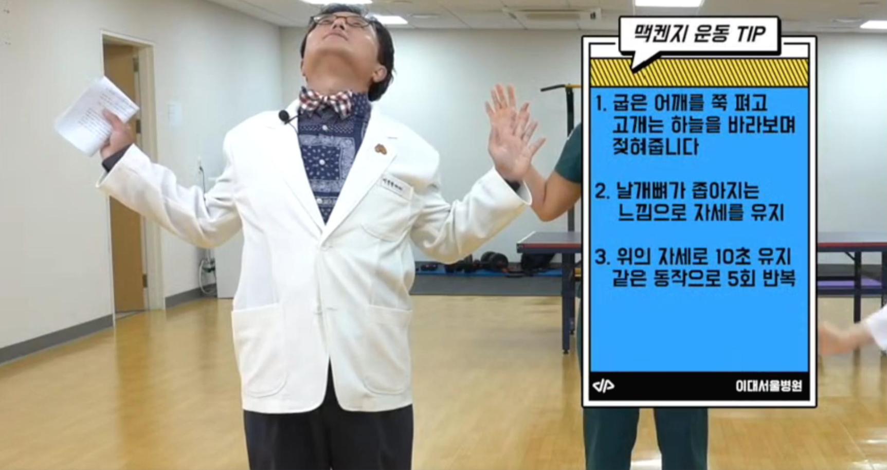 첫 번째는 멕켄지운동입니다. 그중에 한가지만 가져왔습니다. 멕켄지 운동은 인터넷에 검색하시면 엄청 많이 나오는데 현대인 특히 컴퓨터와 핸드폰을 자주 보시는 분들에게 많이 권장하는 운동입니다.