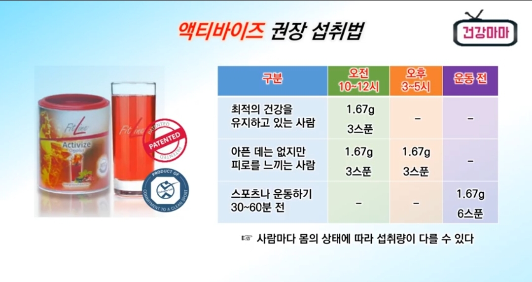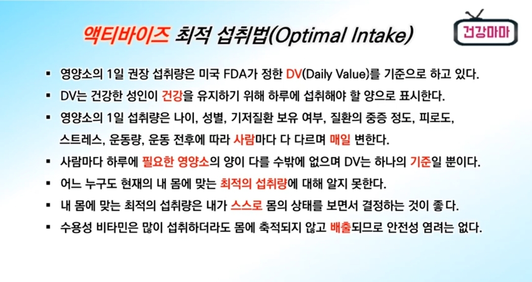 액티바이즈 권장 섭취법은 참고 사항입니다.