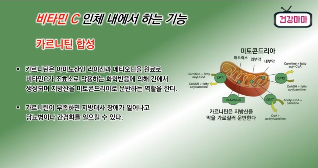비타민 C 가 인체 내에서 하는 기능 - 카르니틴 합성