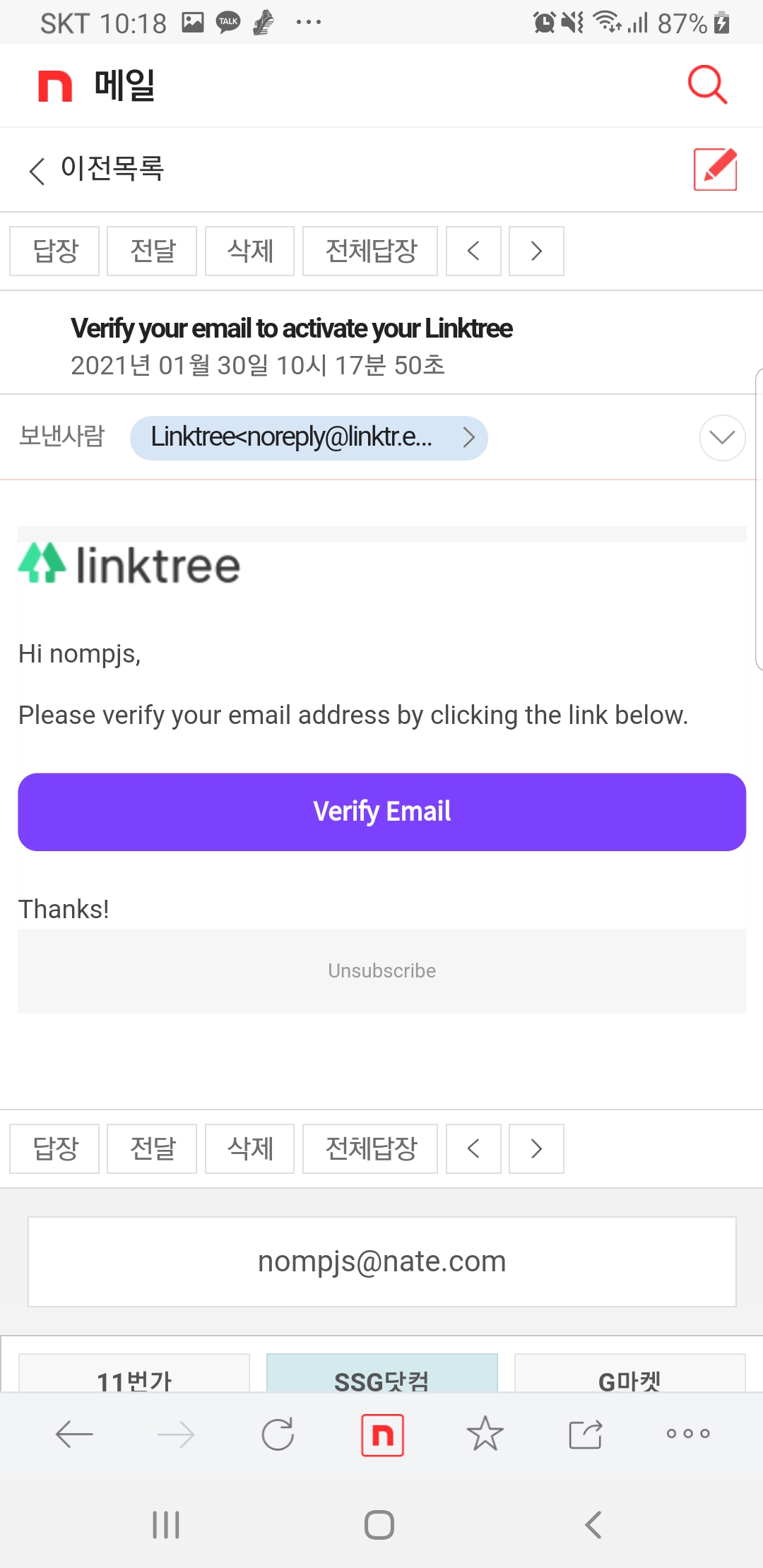 전 네이트 메일로 가입해서 네이트로 접속해서 메일을 확인했습니다.