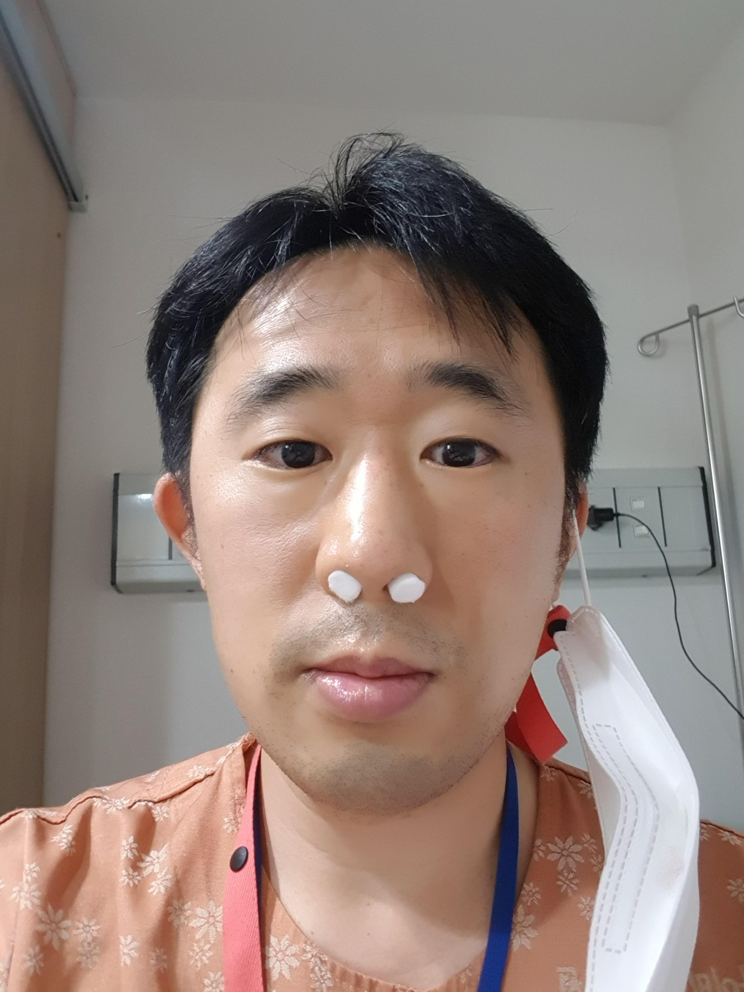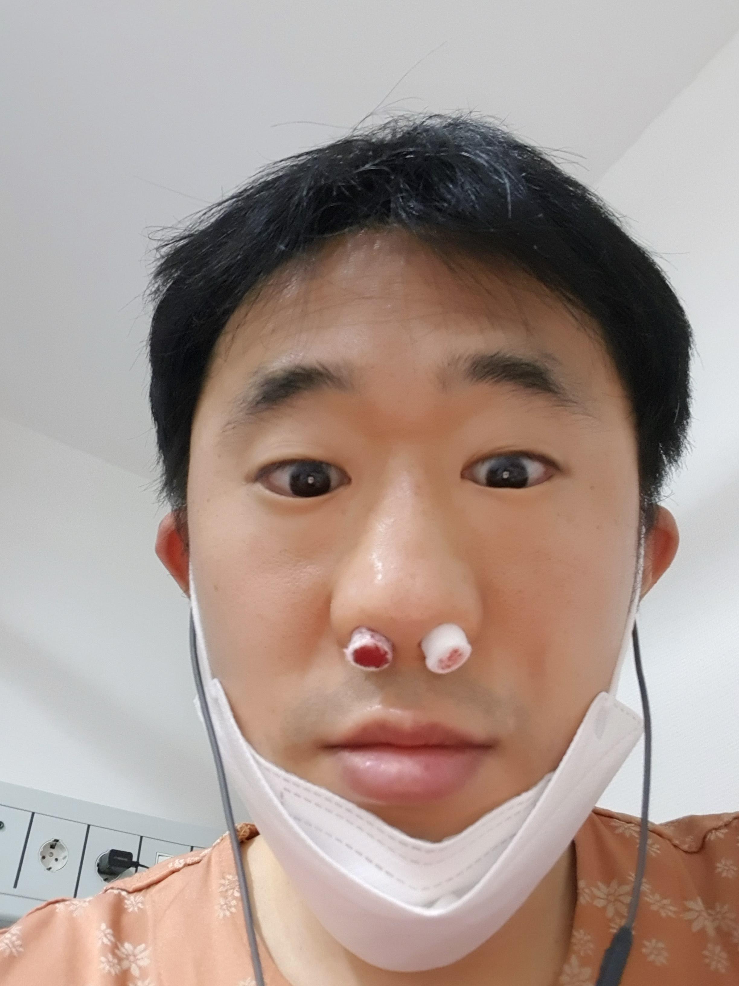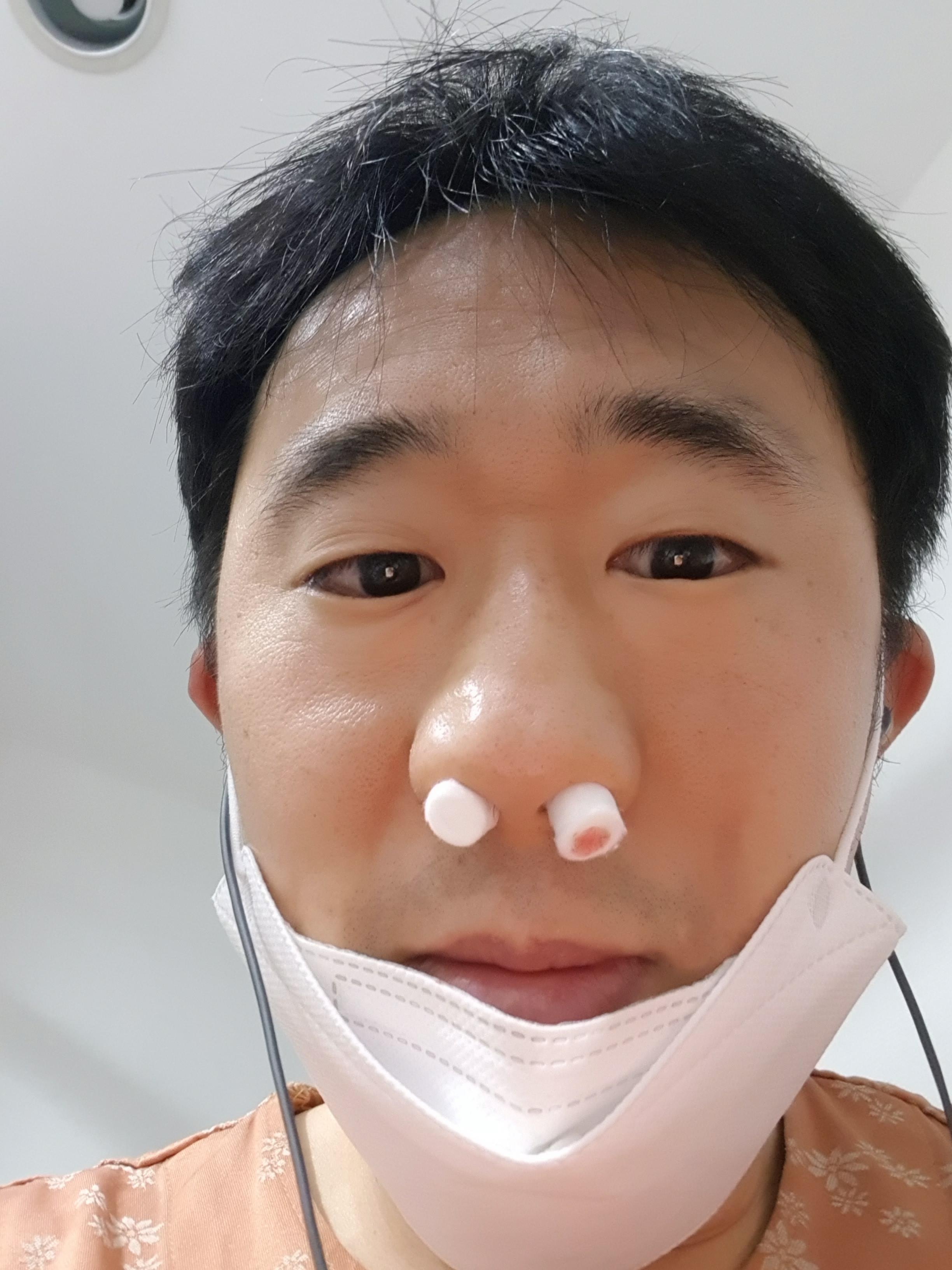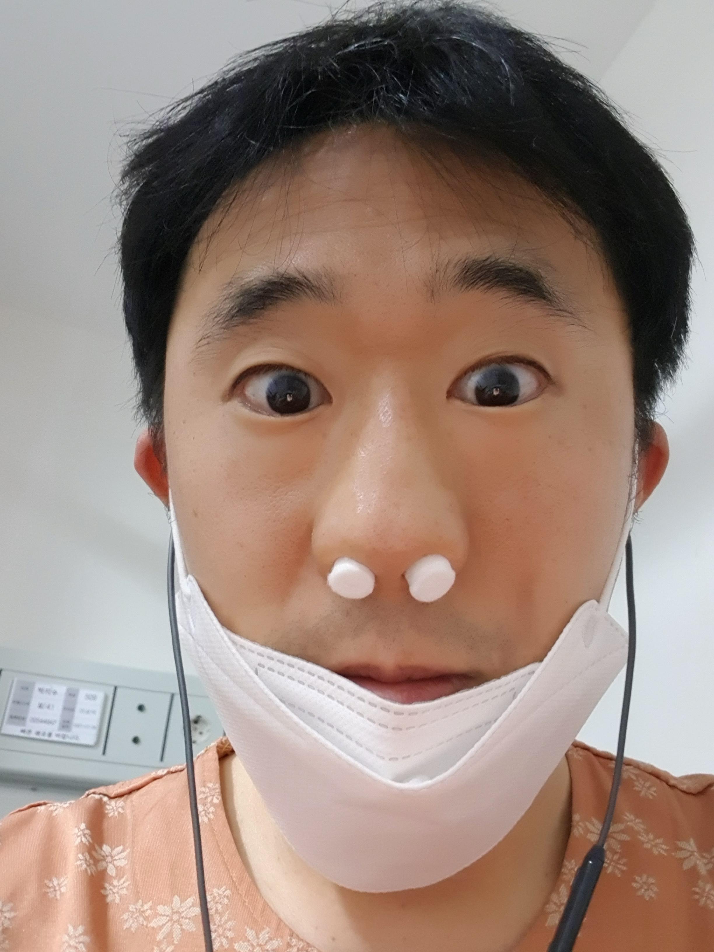 웃음과 동시에 왼쪽 코솜도 같이 빠졌다