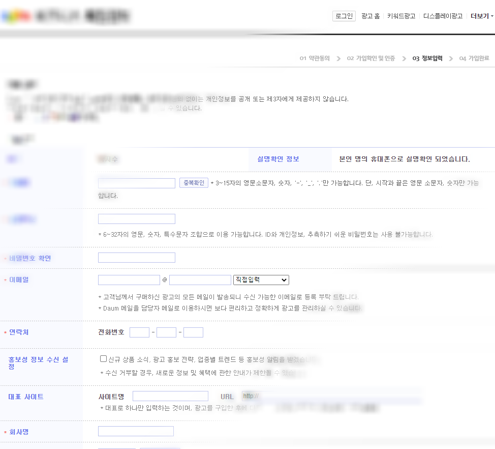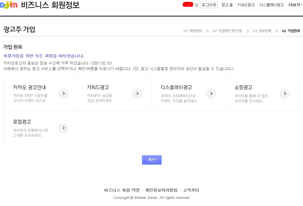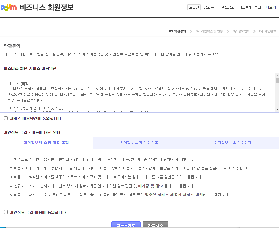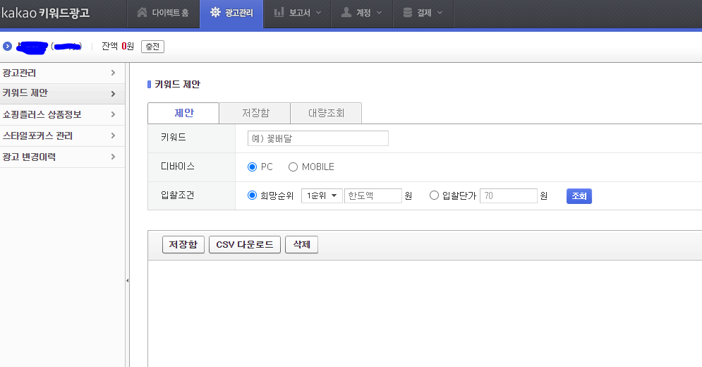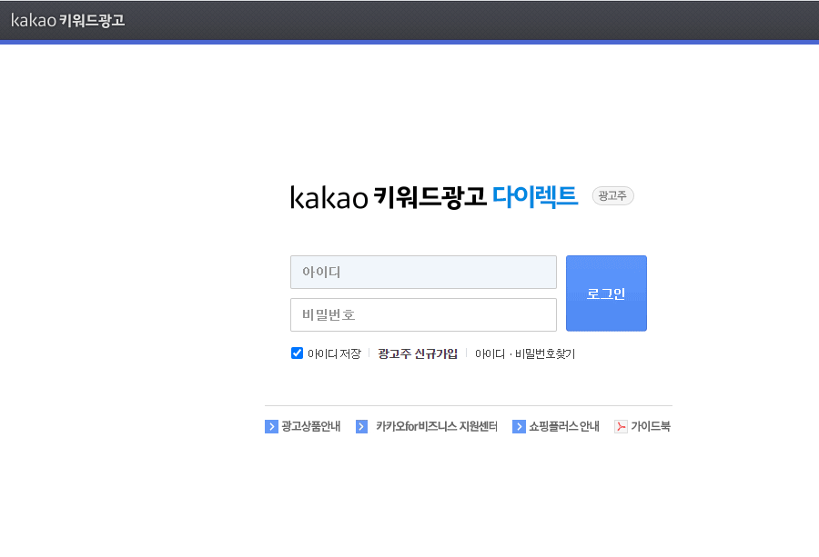 카카오 키워드 광고를 클릭하면 다음과 같은 화면이 나옵니다.