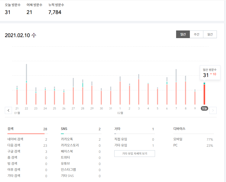자신의 글이 모바일에서 사람들이 많이 보는지 PC에서 많이 보는지 유입 분석도 필요합니다.
