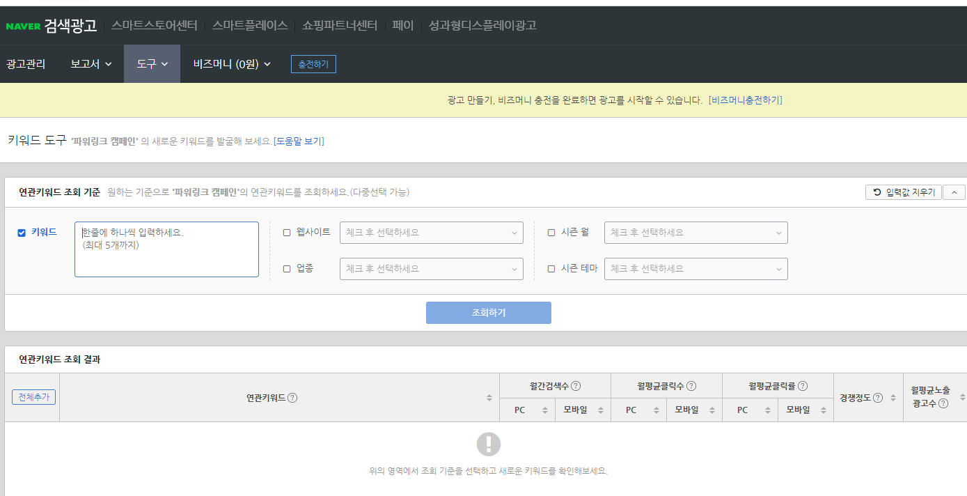 네이버 블로그는 네이버 광고에서 키워드를 검색합니다.