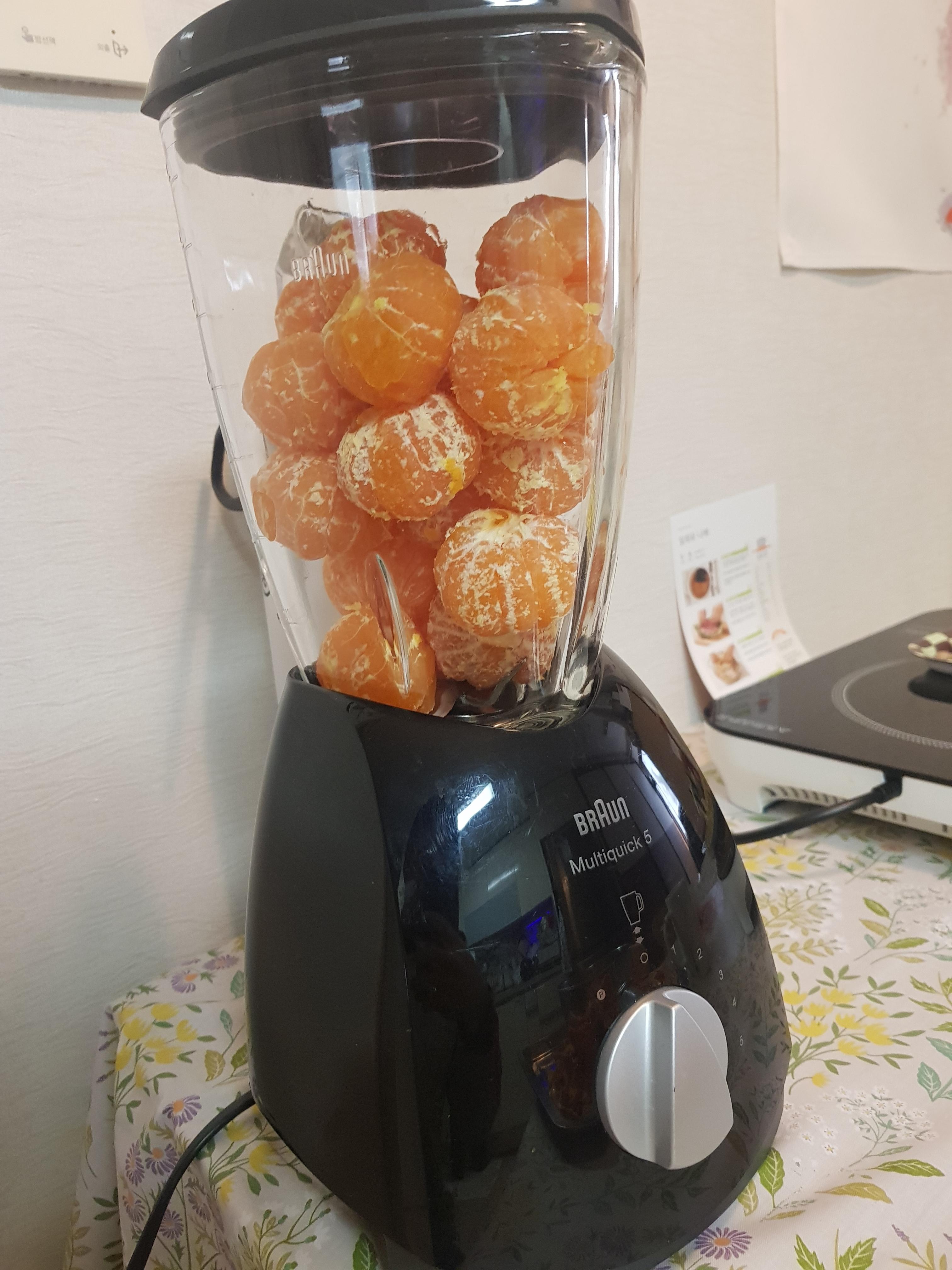 자잘한 감귤을 여러 개 까서 믹서기에 투하합니다.