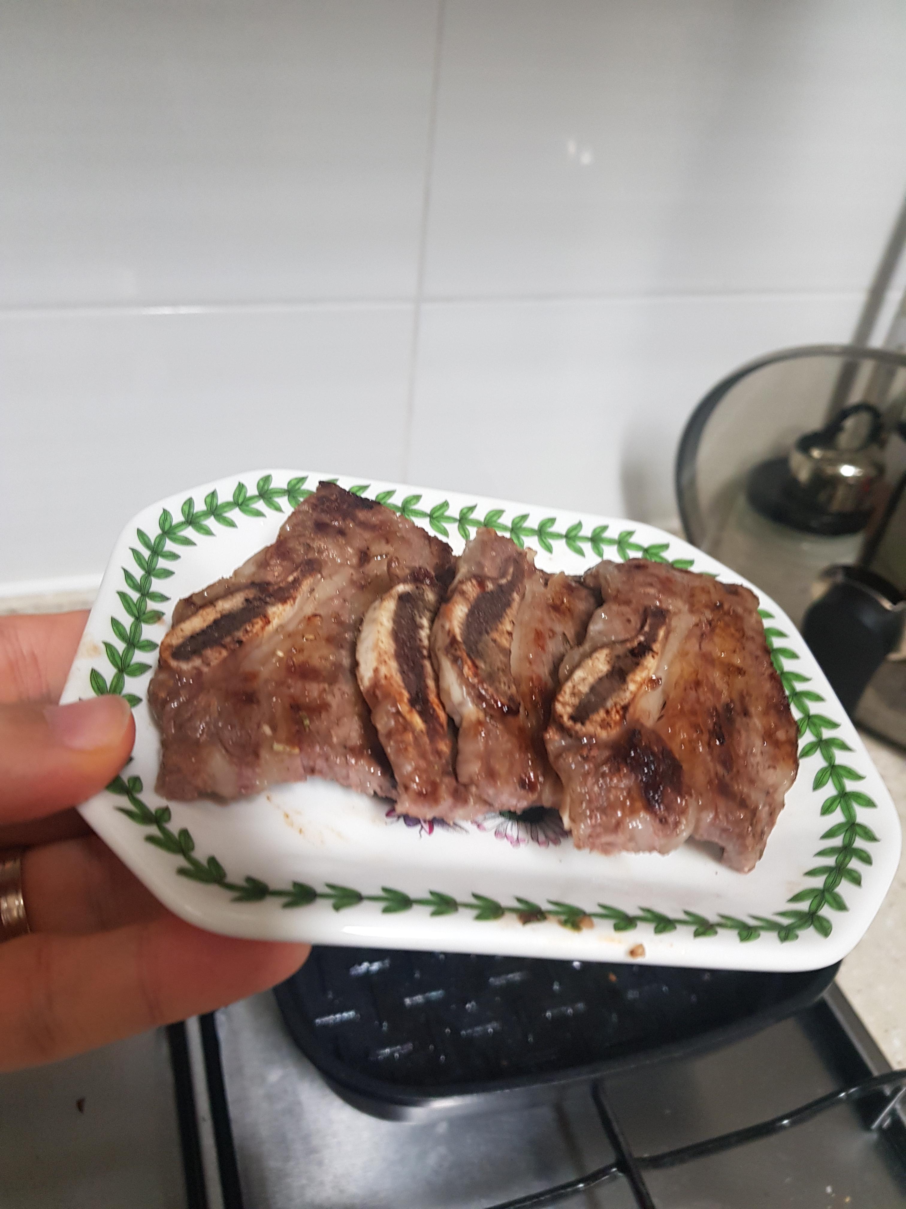 그리고 숙성을 하루 시켜야 하는데 미리 맛보기로 5조각을 구워봤습니다.