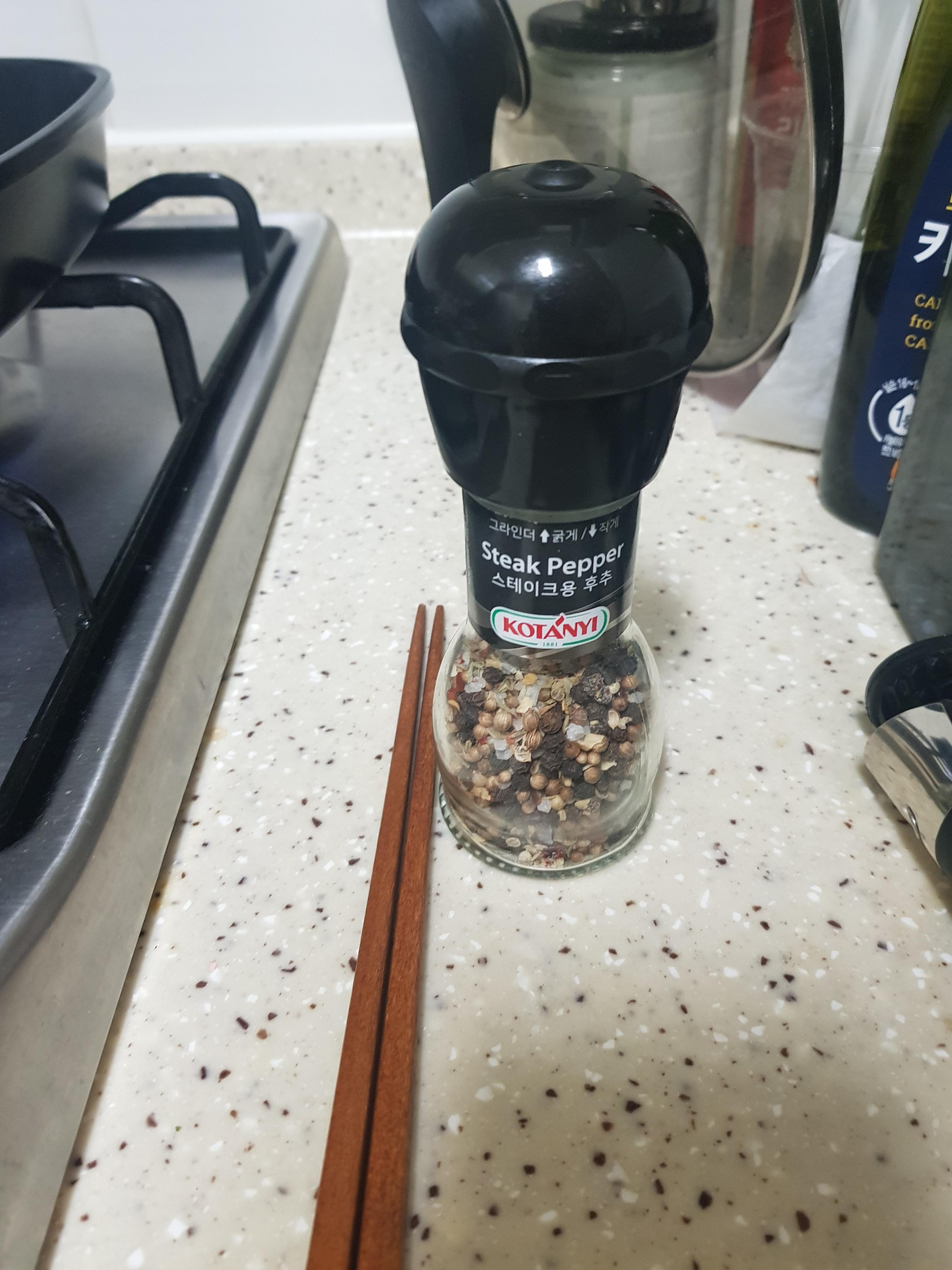 그리고 스테이크 후추도 샤샤삭 뿌려줍니다.