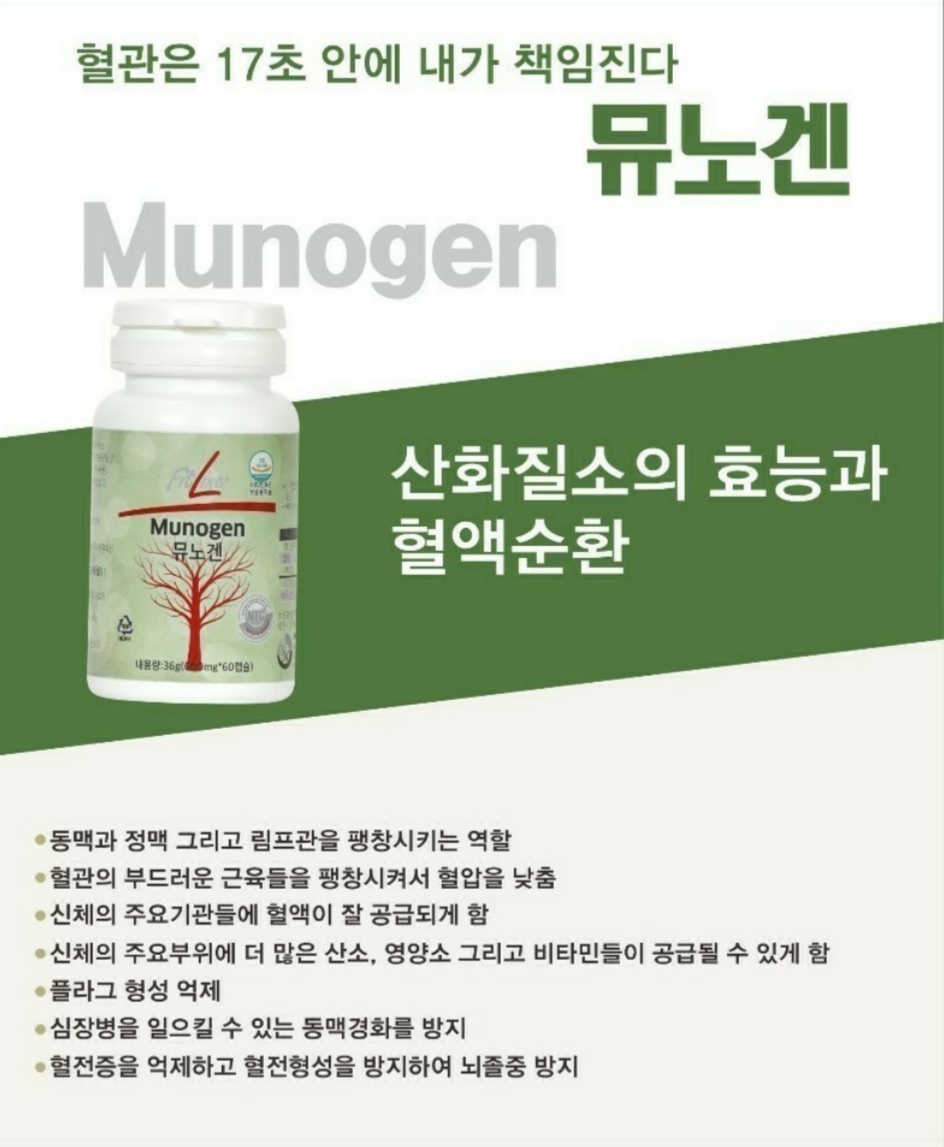 아르기닌은 혈관을 유연하고 깨끗하게 해주는 산화질소를 배출해 몸의 혈액순환 개선을 도와줍니다.
